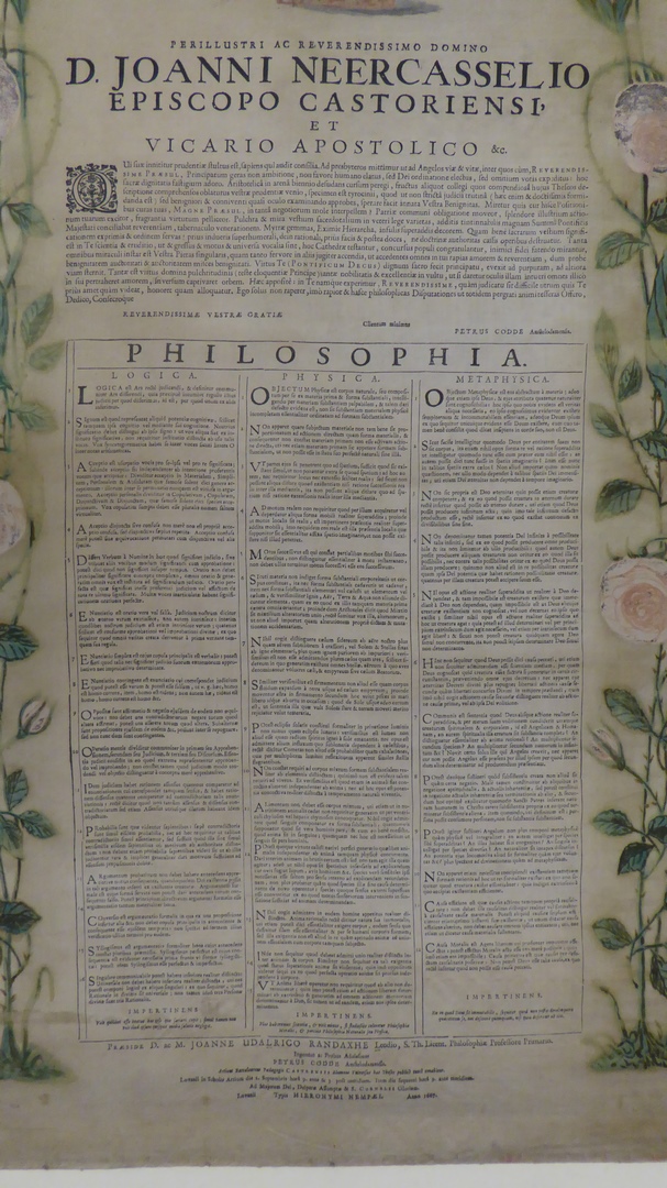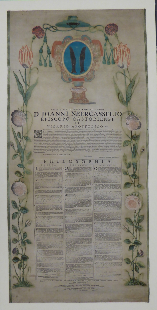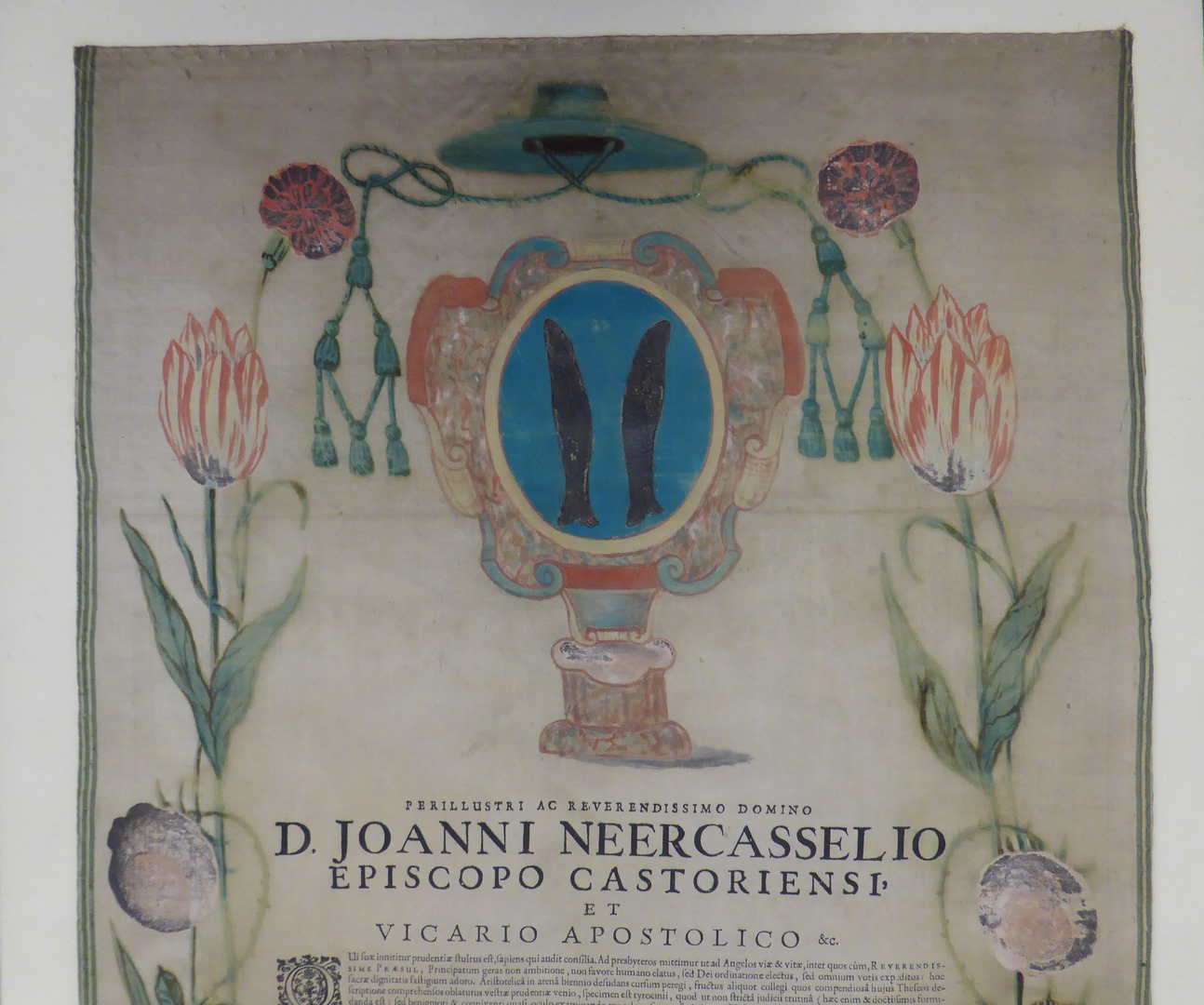 Tekst op zijde gewijd aan Johannes Neercassel met daarboven wapen en bisschopshoed