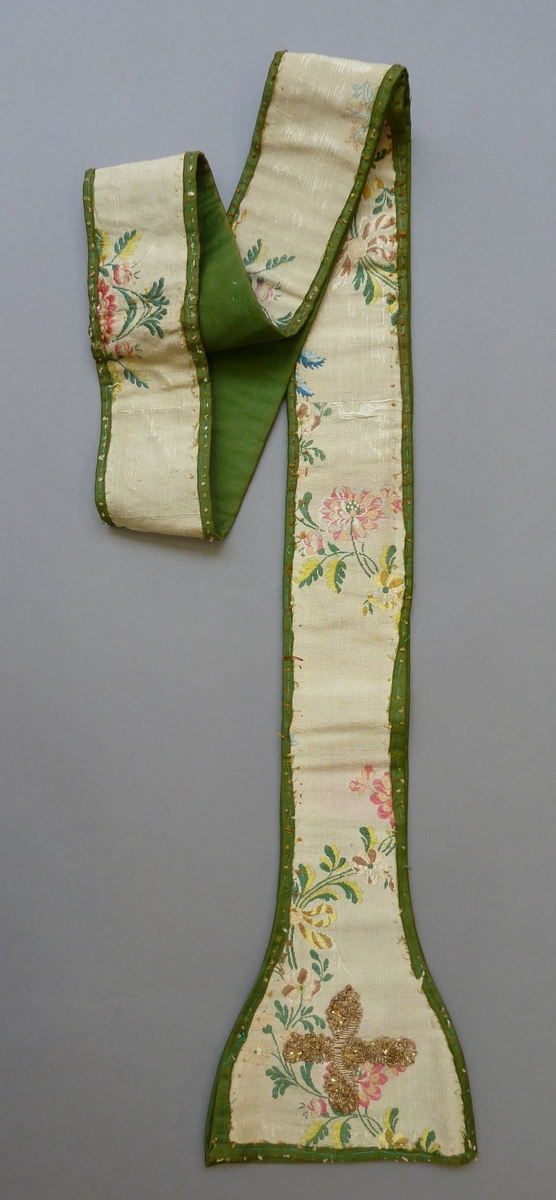 Witte stola met ingeweven bloemranken en kruisjes van goudkant