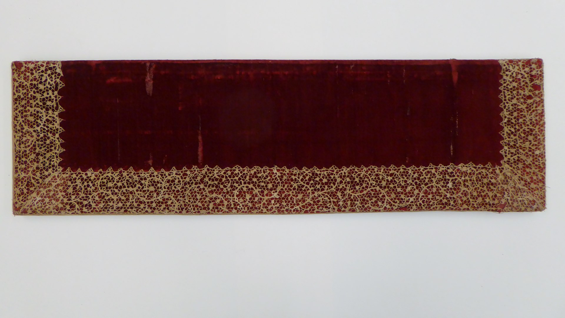 Rode altaarvoorzet afgezet met Italiaanse naaldkant