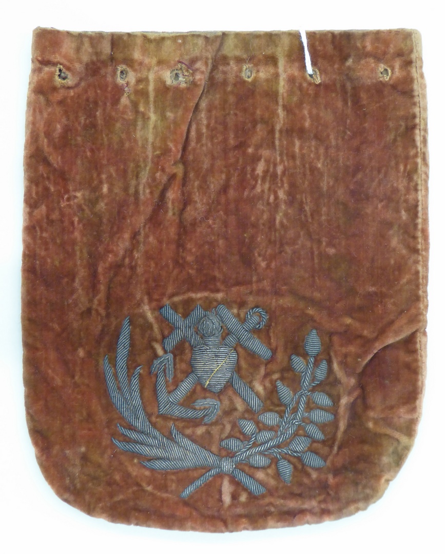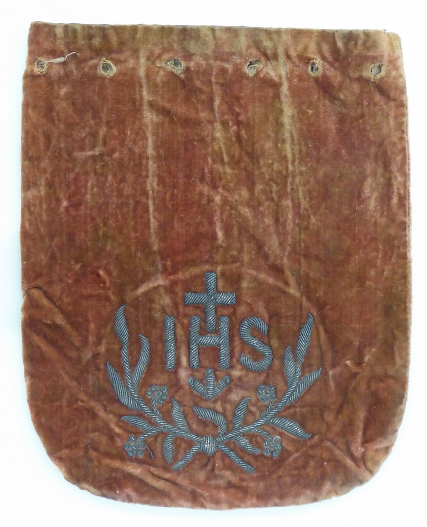 Rode beurs met vlammend hart met kruis en anker
