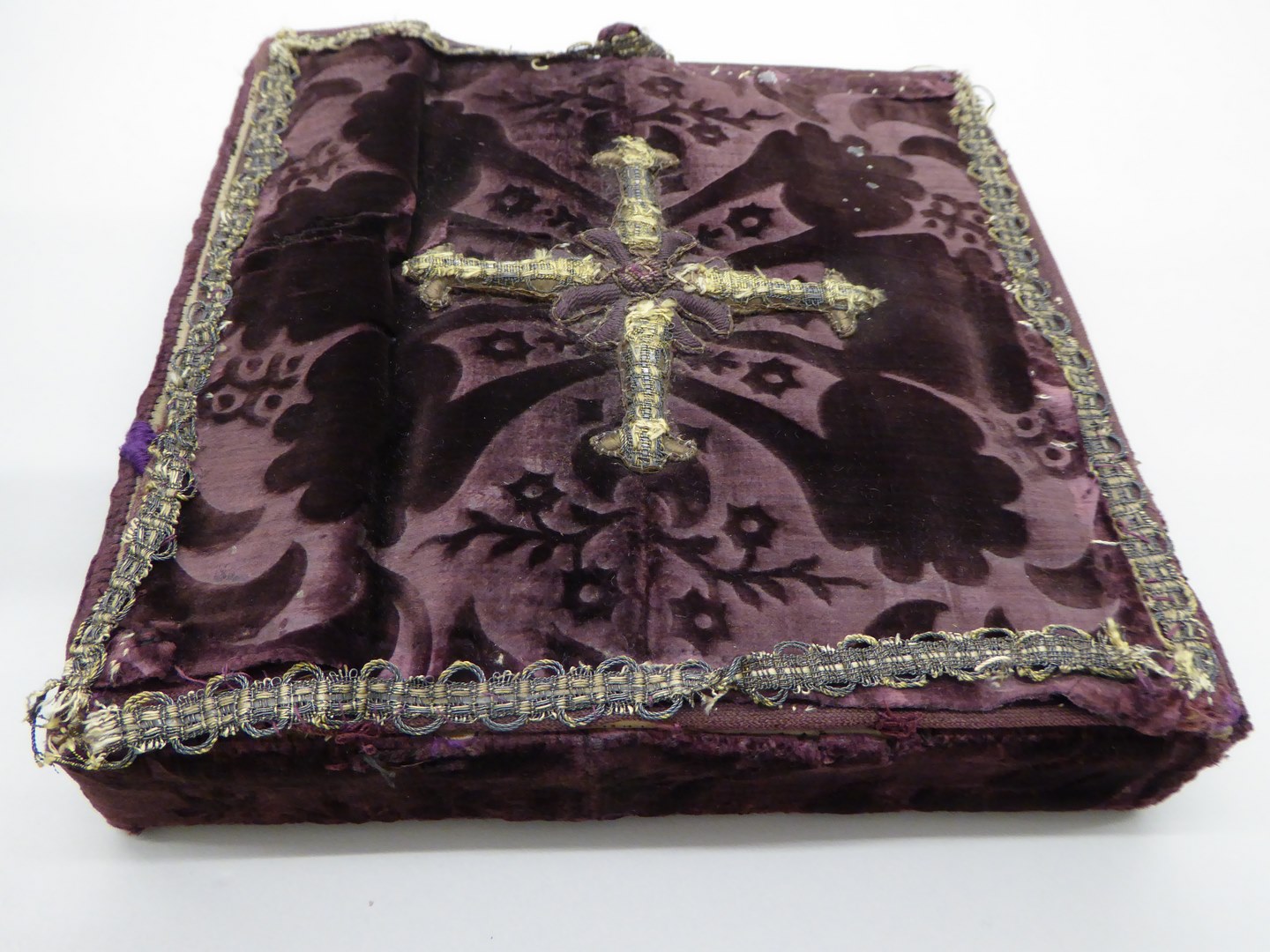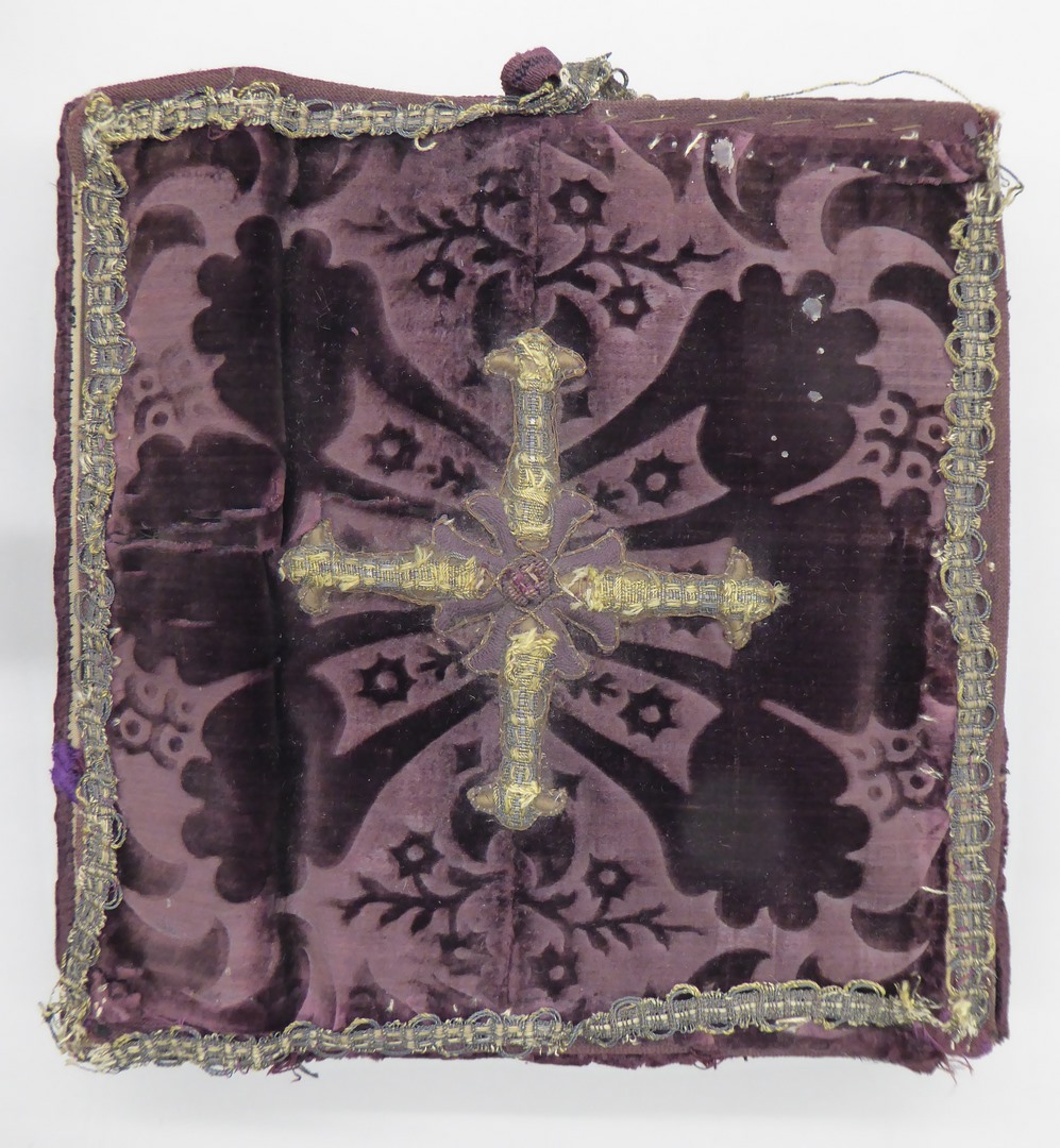 Paarse palladoos met geschoren Lodewijk XIV motieven afgezet met goudgalon