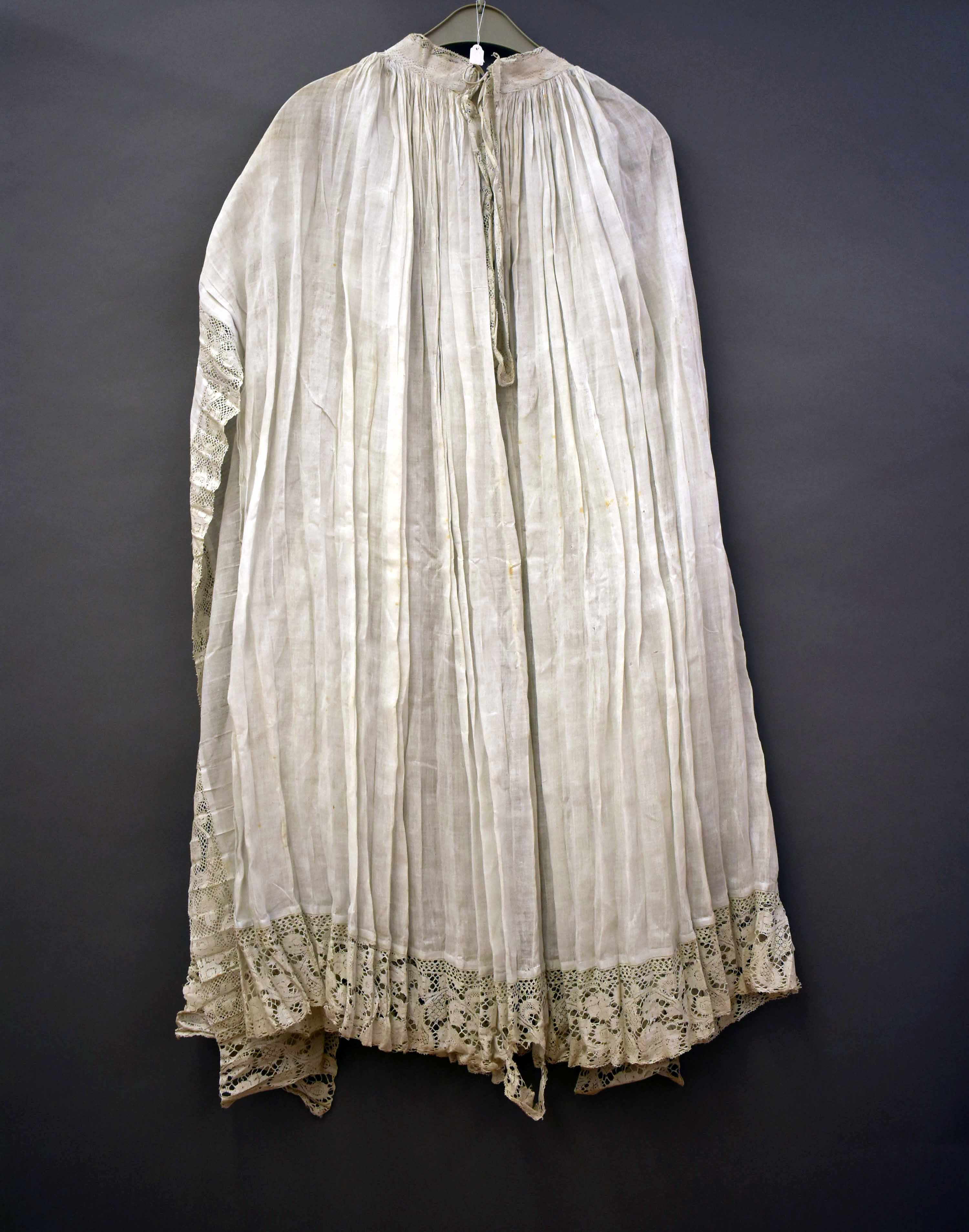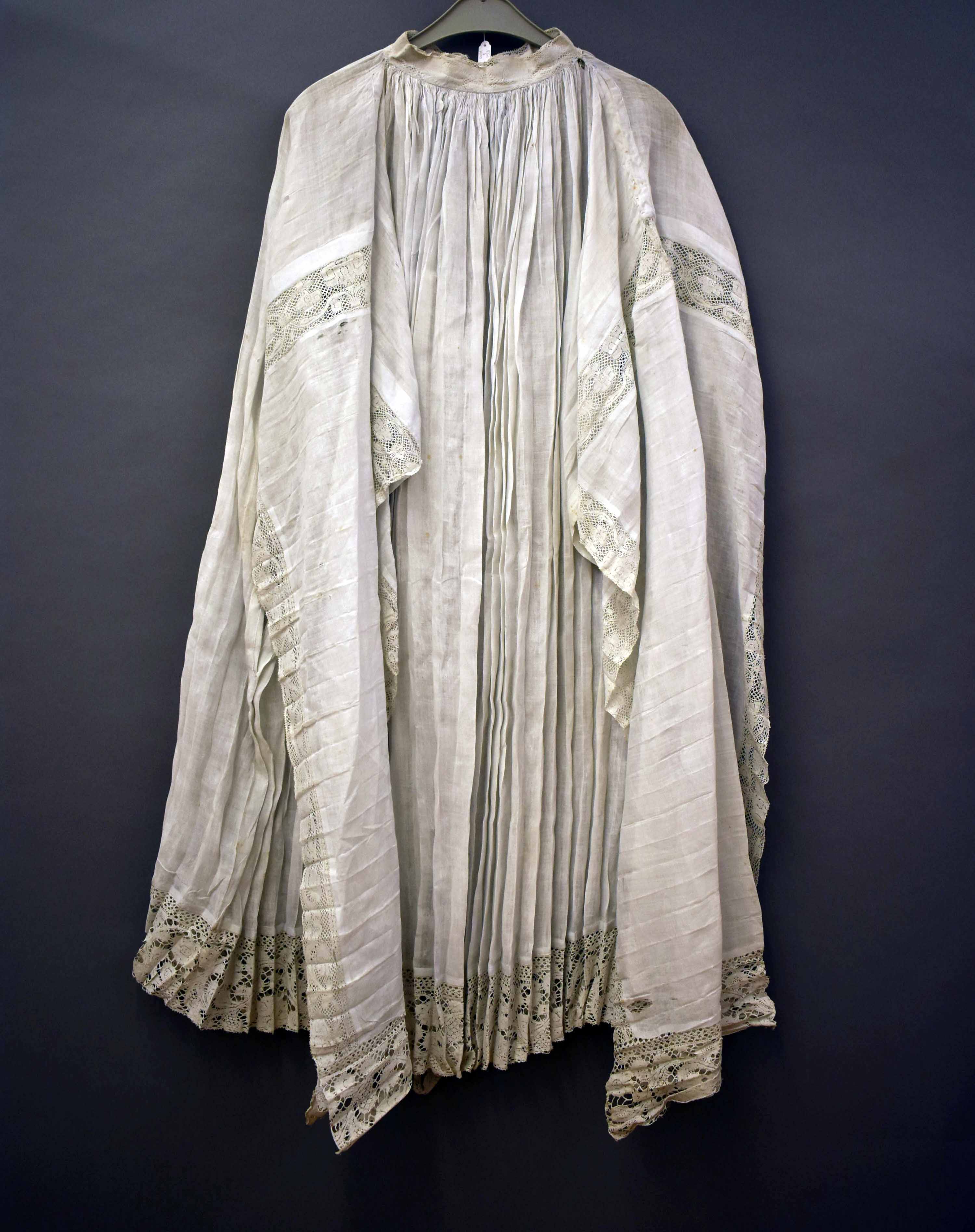 Superplie met open mouwen van witte batist, afgezet met Vlaamse kloskant