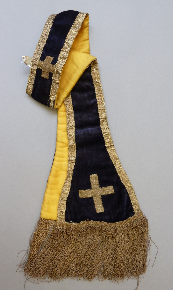 Paarse manipel met goudfranje en drie kruisen van goudgalon