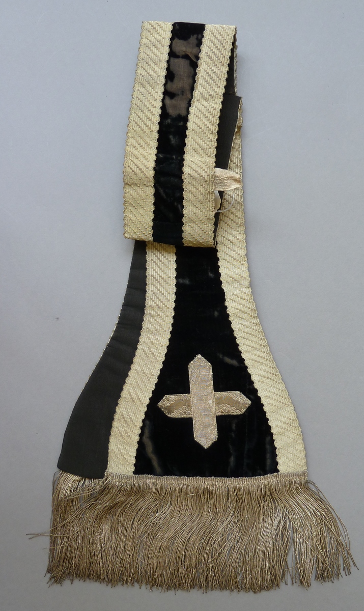 Zwarte manipel met zilverfranje en kruisen en rand van zilvergalon