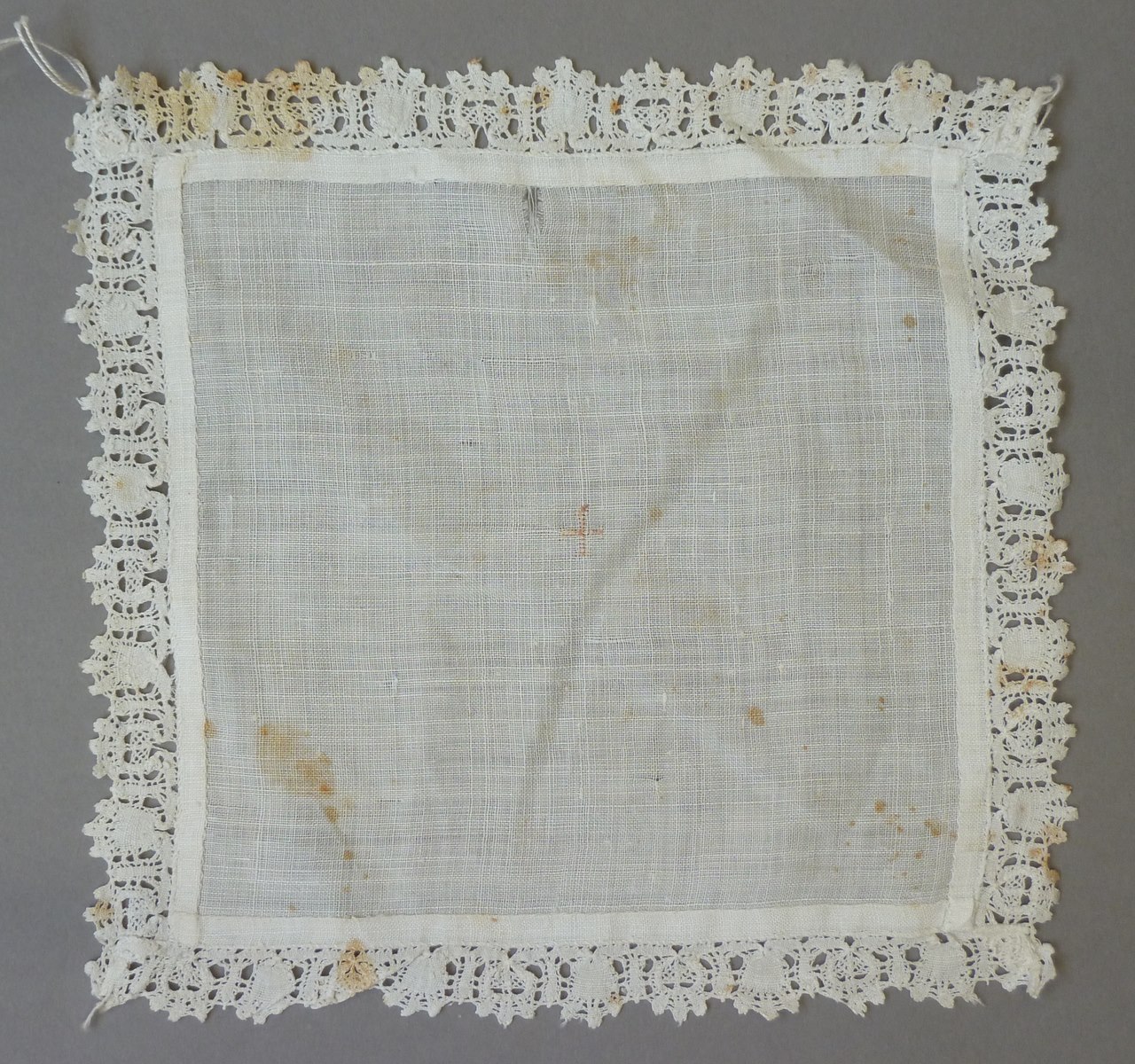 Witte palla (onderzijde) met rood kruisje en kloskanten rand