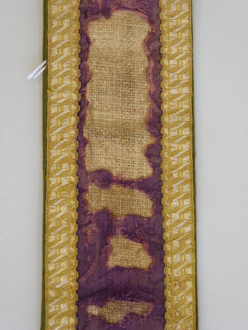 Paarse manipel van zijdedamast met florale motieven