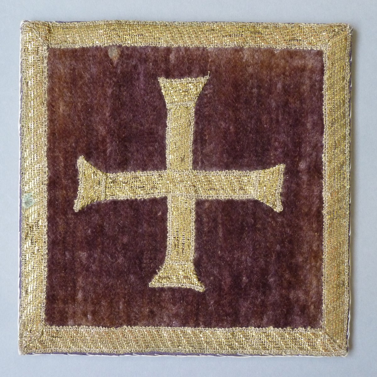 Paarse palla met kruisje van goudgalon en idem rand