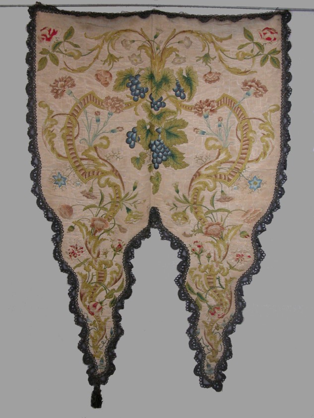 Naturelkleurig sacramentsvaan met blauwe druiven en groene bladranken met links en rechts bloemen