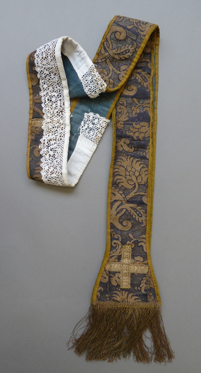 Blauwe stola, gebrocheerd, met ingeweven bloempatroon