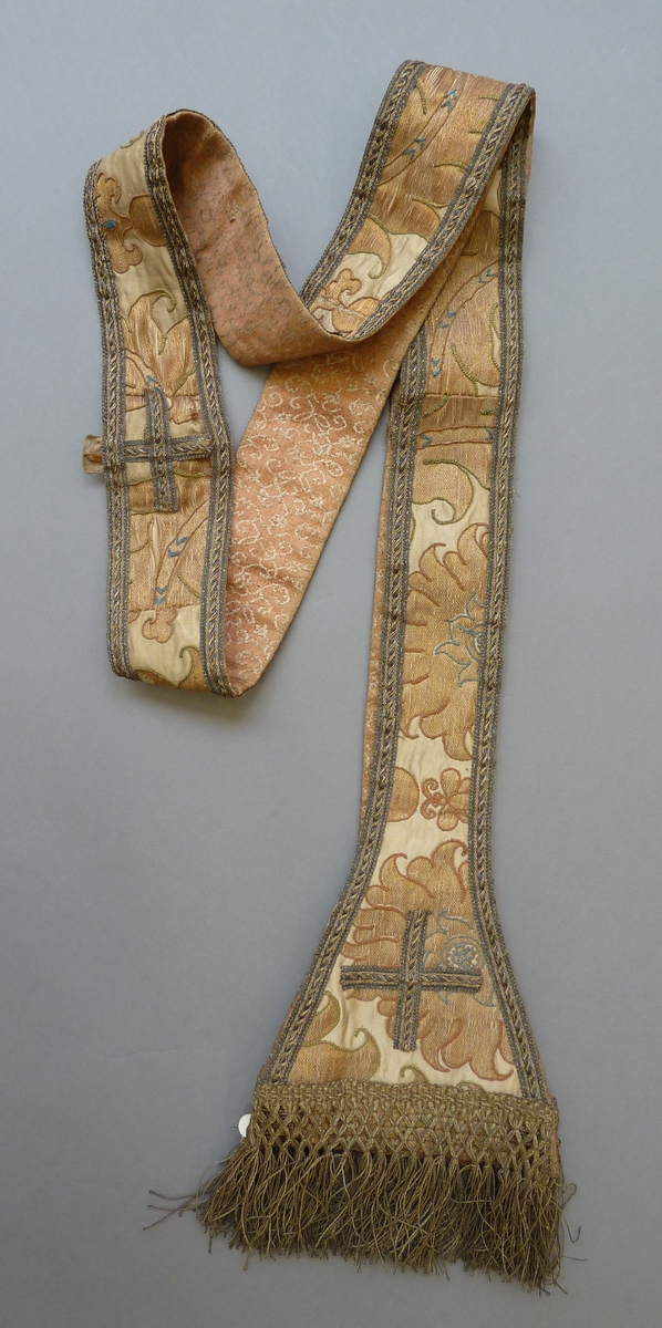 Witte (crème) stola geborduurd met grote gestileerde bloemranken