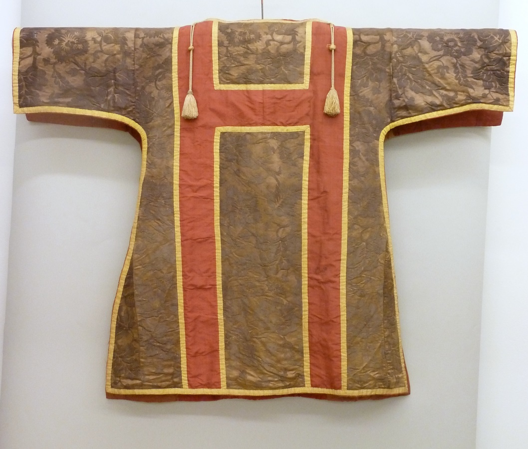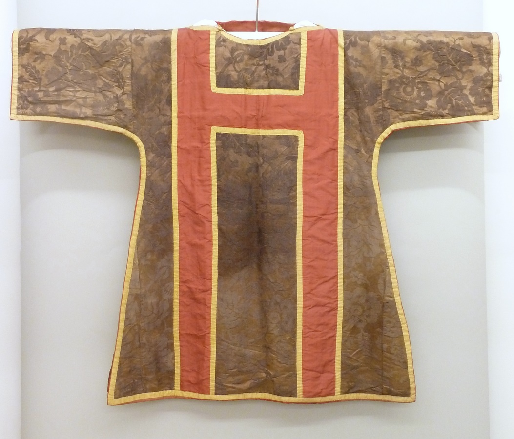 Rood-bruine dalmatiek met ingeweven granaatappelmotief en bloempatroon
