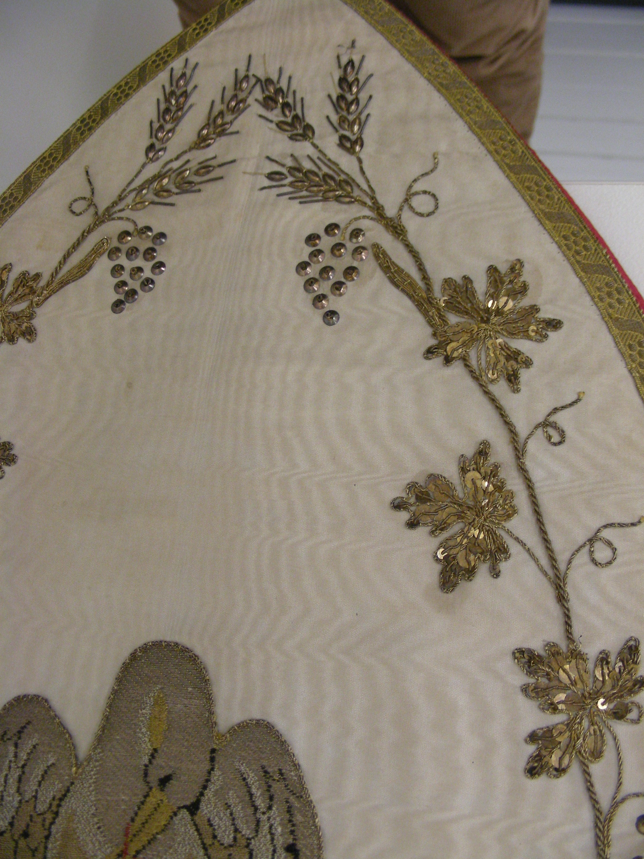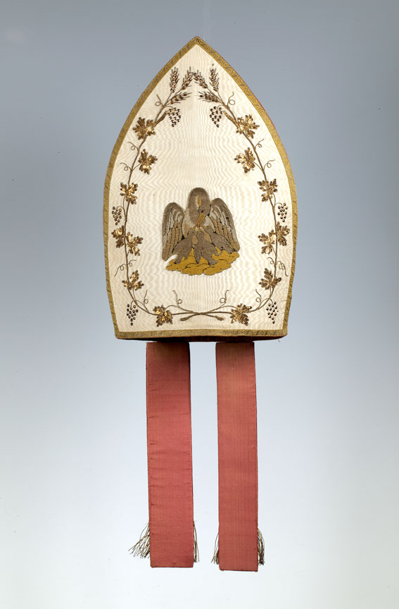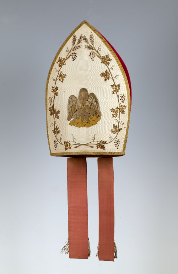 Witte mijter met pelikaan in druivenranken
