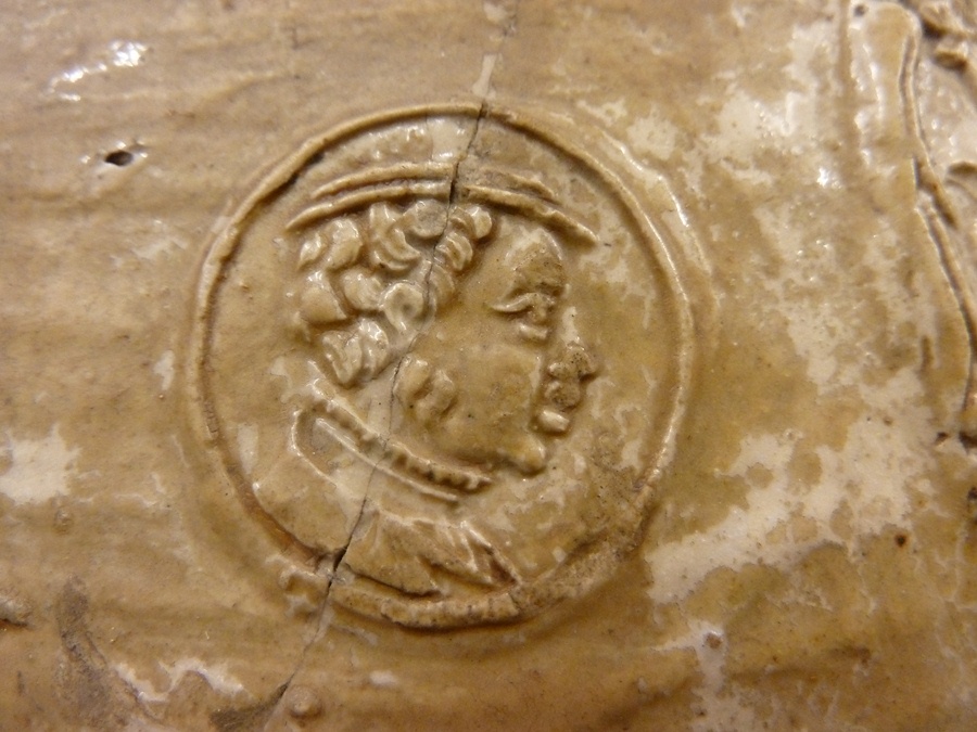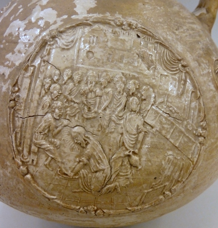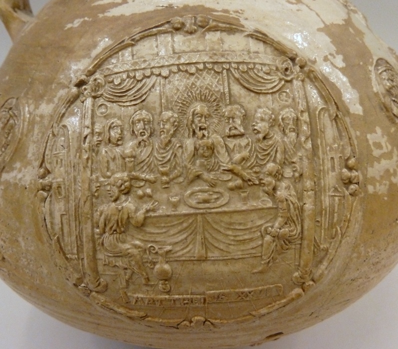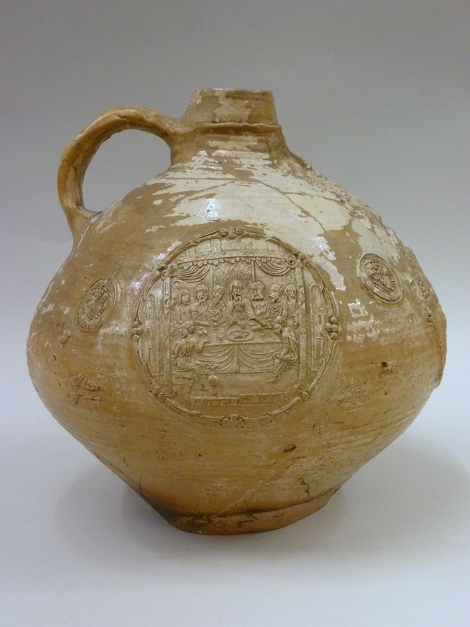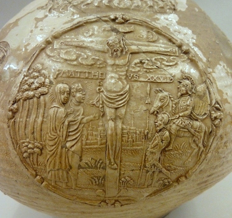 Baardmankruik, o.a. versierd met medaillons met voorstellingen uit het leven van Christus
