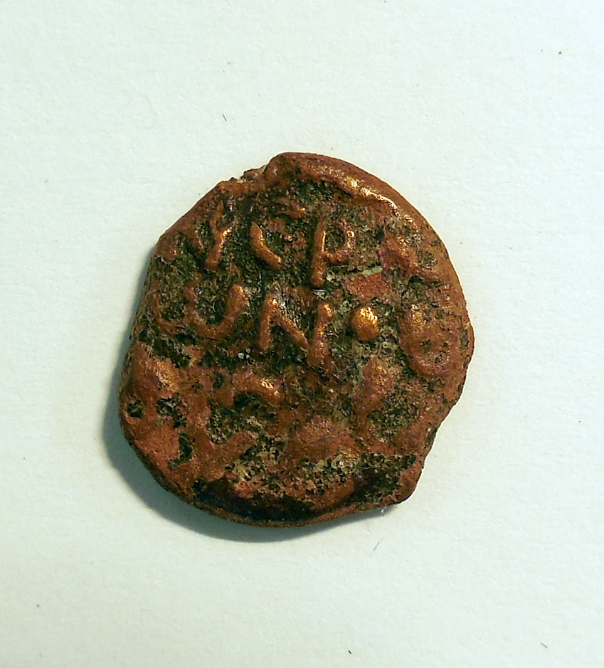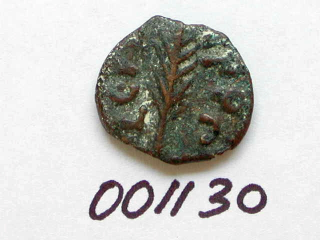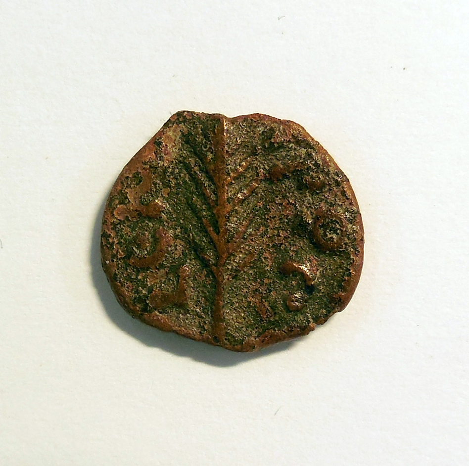 Quadrans van Antonius Felix, palmtak met "LE KAISAROC" (jaar 5 van keizer), kz. met "NERONOS" (van Nero), in rondschrift