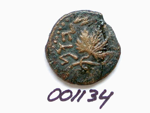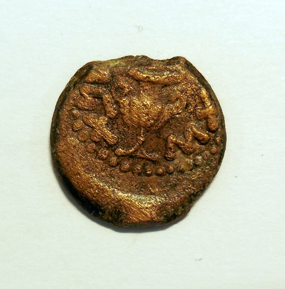 Sikkel (sjekel) uit de tijd van de 1e joodse opstand met amfoor, kz. wijnrank met blad, "bevrijding van Sion"