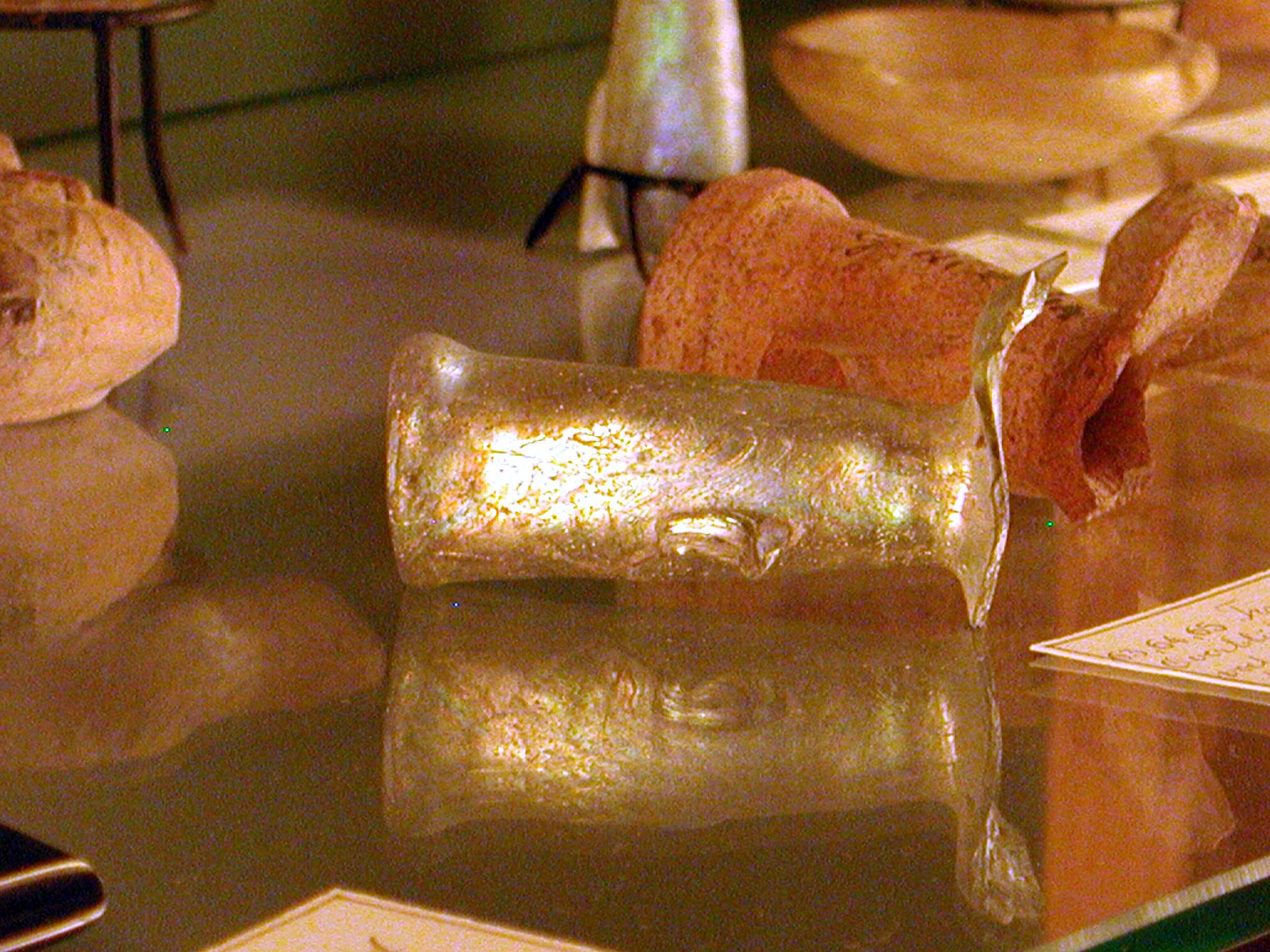Hals van tranenflesje van groen geglazuurd glas