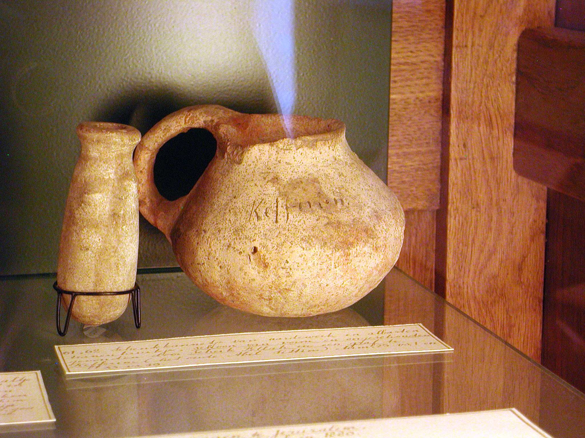 Roodbruin schenkkannetje, met het woord 'Kefferim'