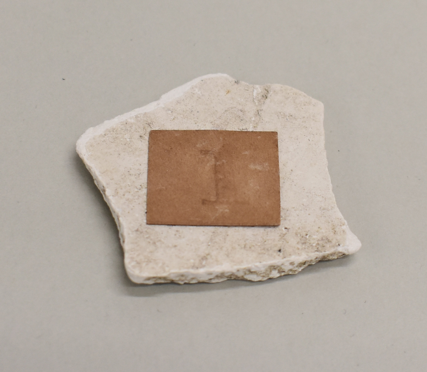Een van de zes soorten kalksteen, waaruit Jeruzalem bestaat, met etiket waarop "1"