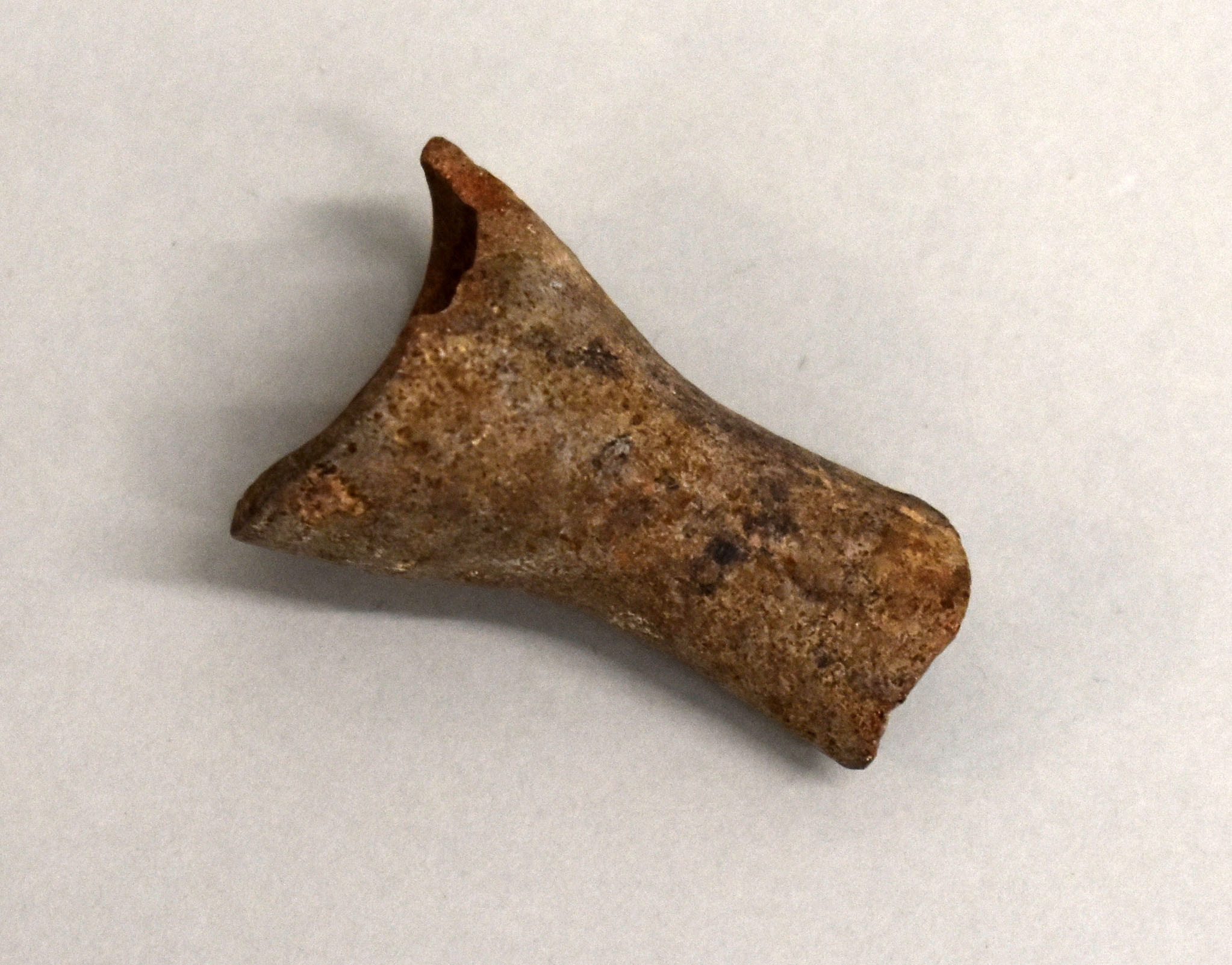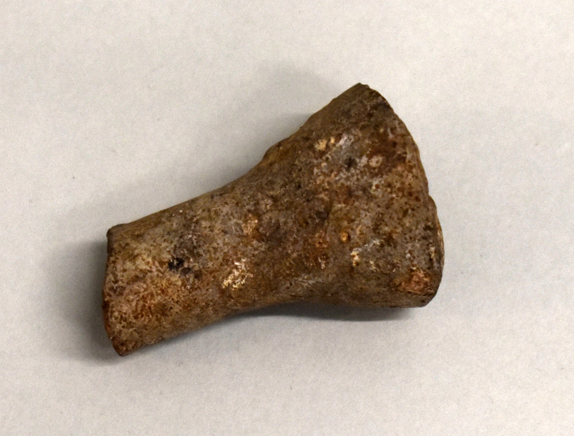 Hals van tranenkruikje van bruin/grijs aardewerk