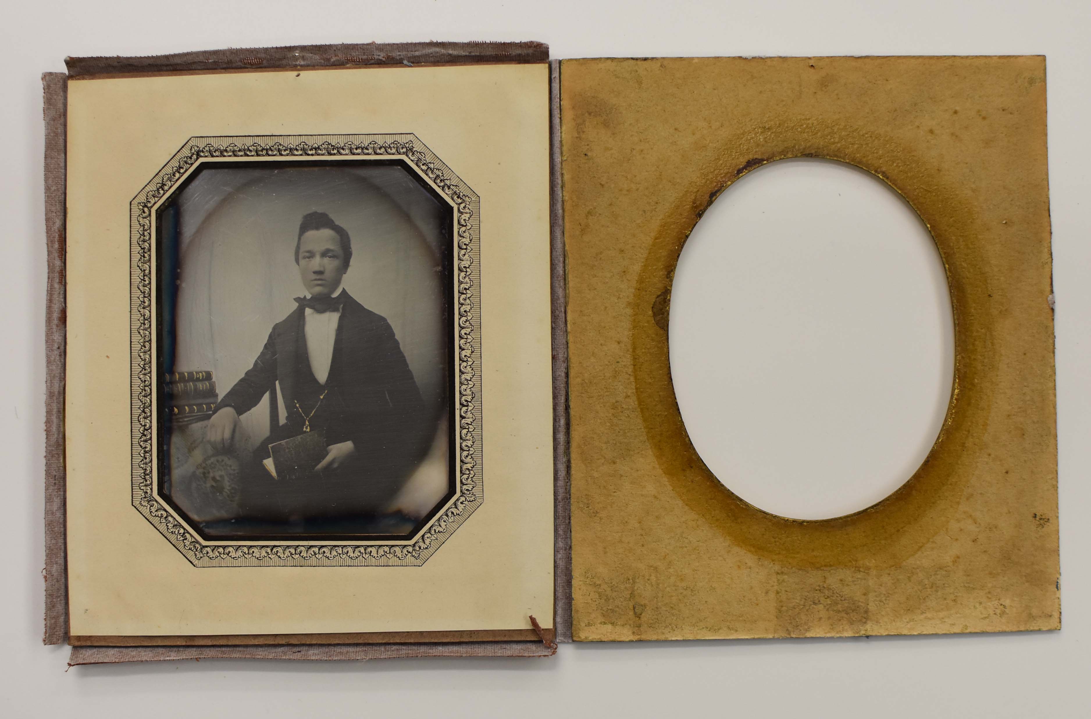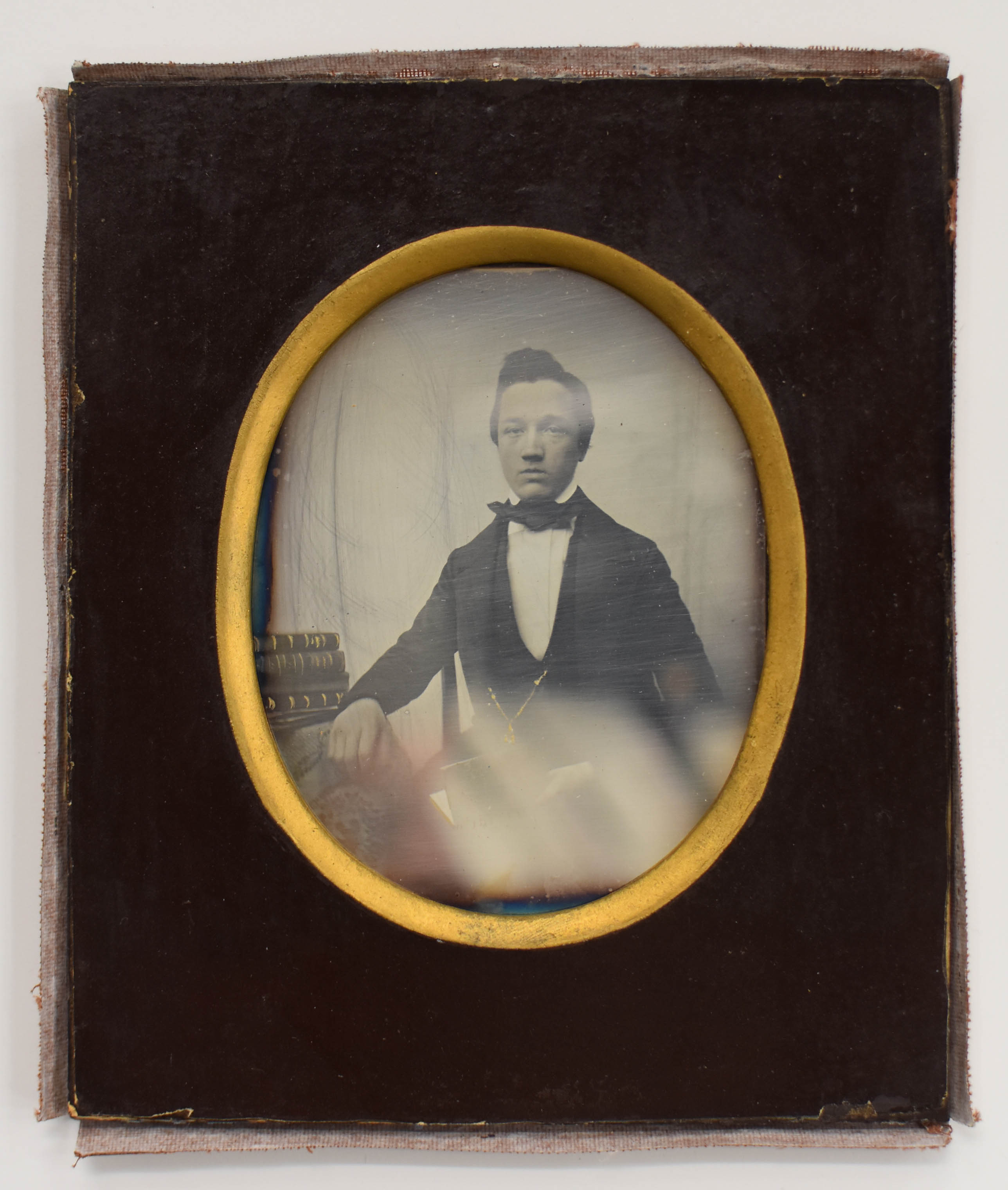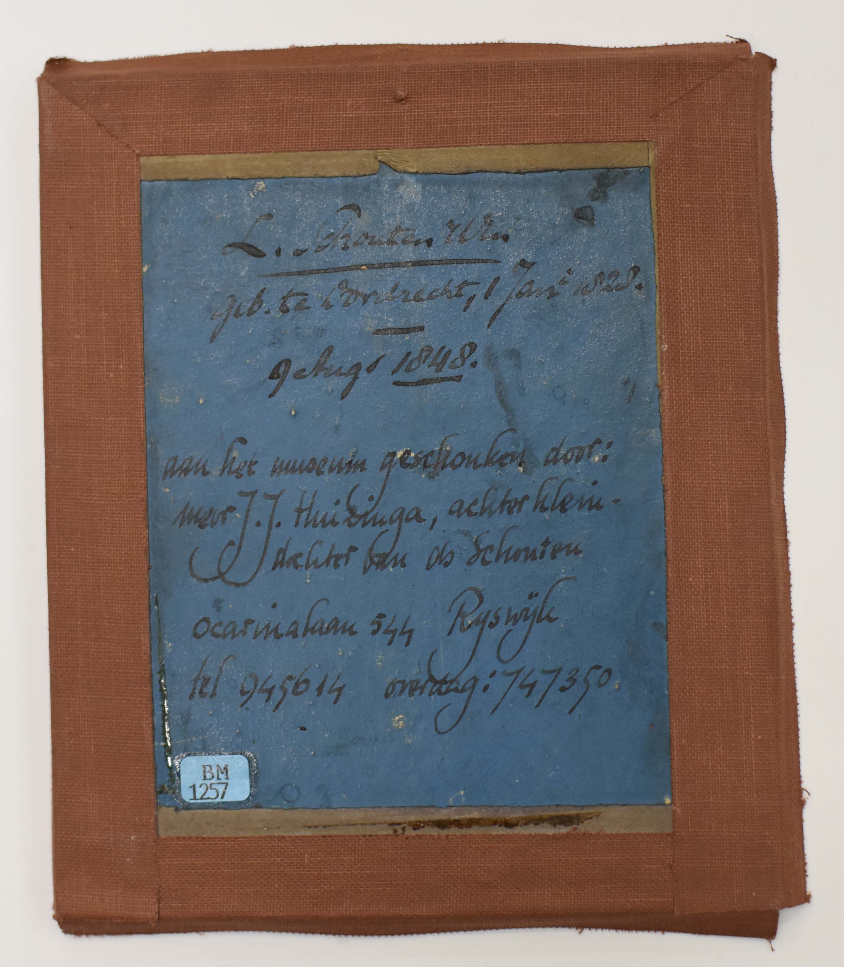 Portret van Leendert Schouten als gymnasiast in Gorinchem. Achter het ovale passe-partout zit een achthoekig passe-partout.