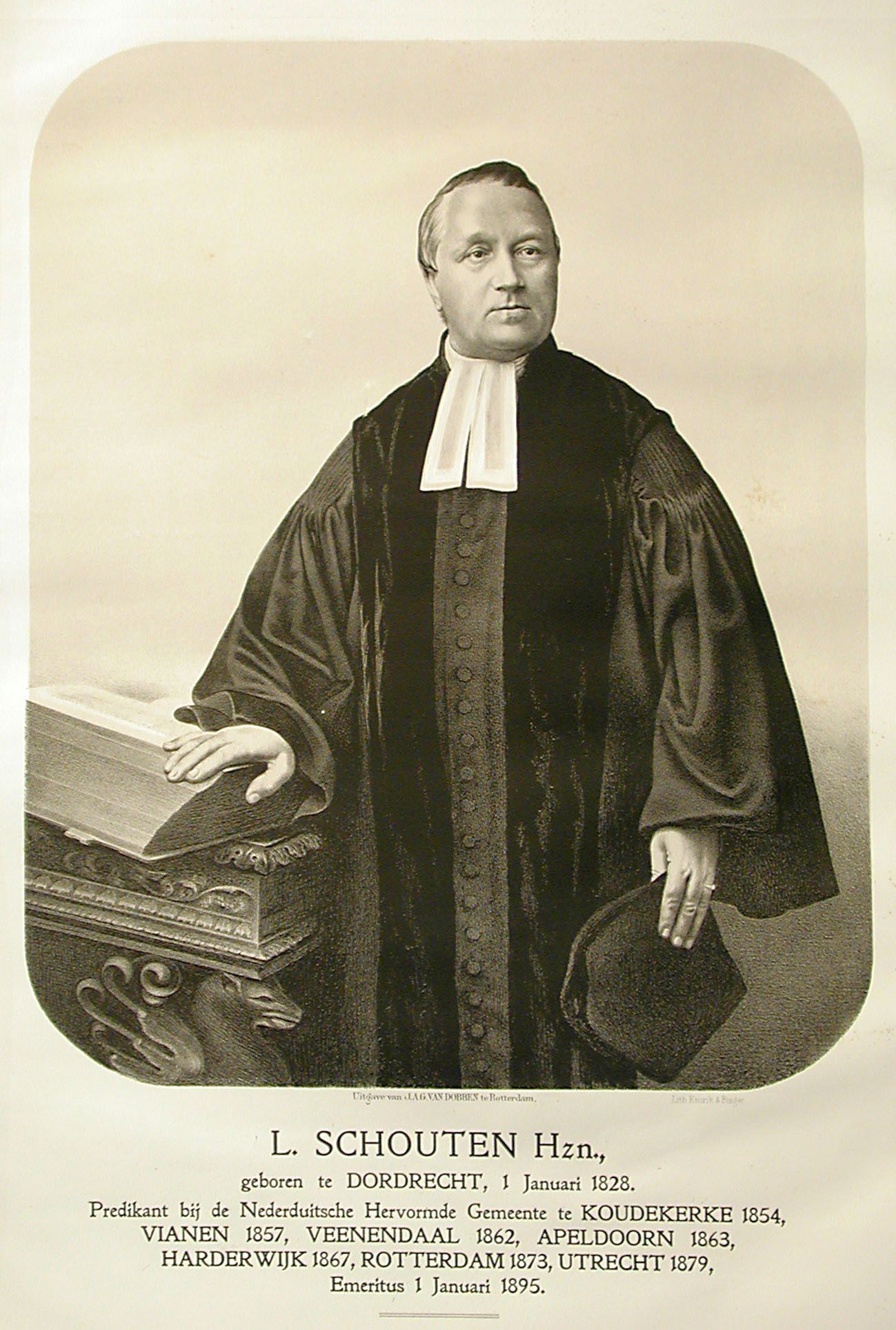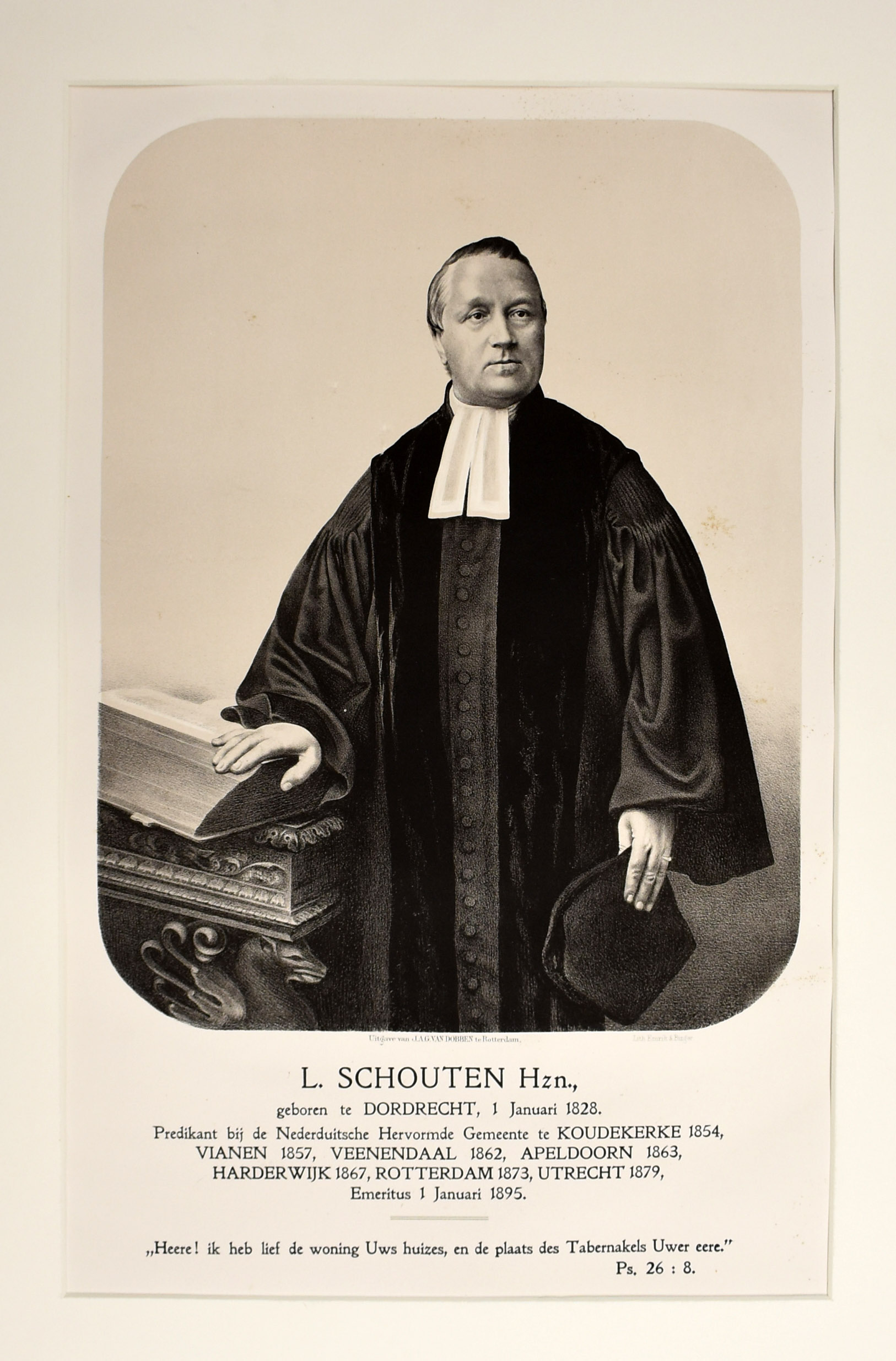 Portret van Leendert Schouten Huibertzoon (1828-1905), predikant te Koudekerke, Vianen, Veenendaal, Apeldoorn, Harderwijk, Rotterdam en Utrecht
