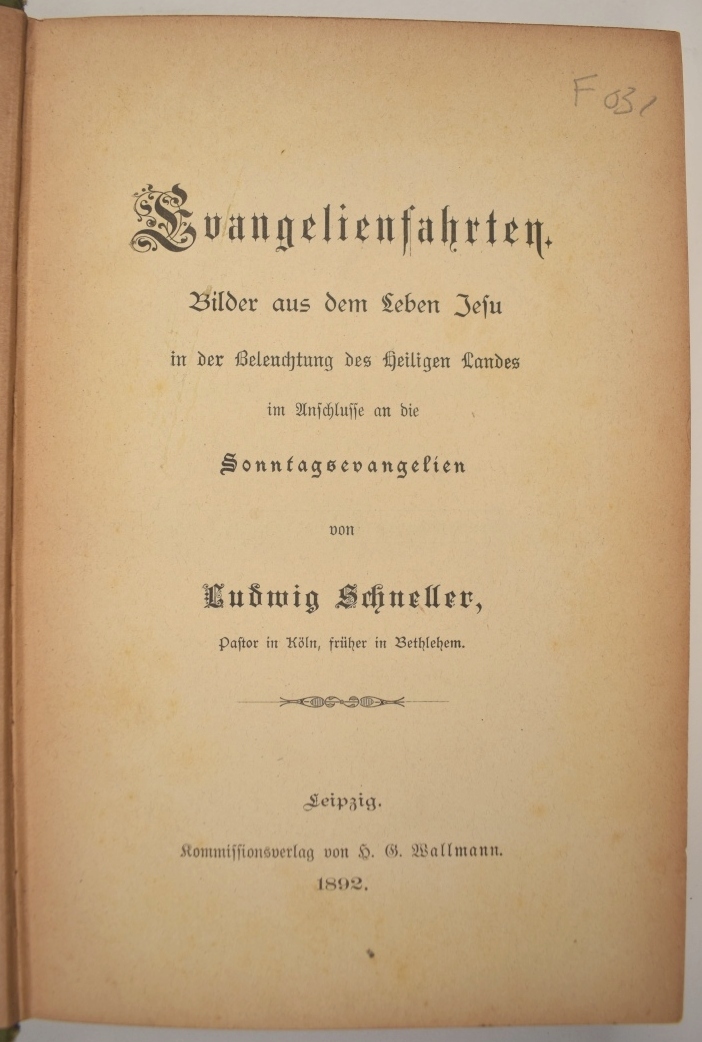 Evangelienfahrten. Bilder aus dem Leben Jesu in der Beleuchtung des Heiligen Landes im Anschlusse an die Sonntagsevangelien von Ludwig Schneller, Pastor in Köln, früher in Bethlehem.