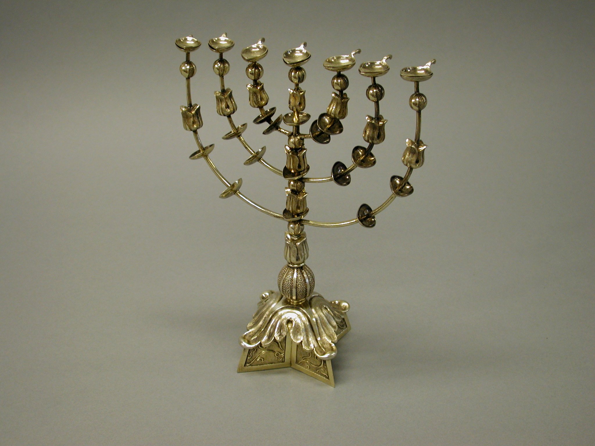 Menora (zevenarmige kandelaar) met zeven losse olielampjes