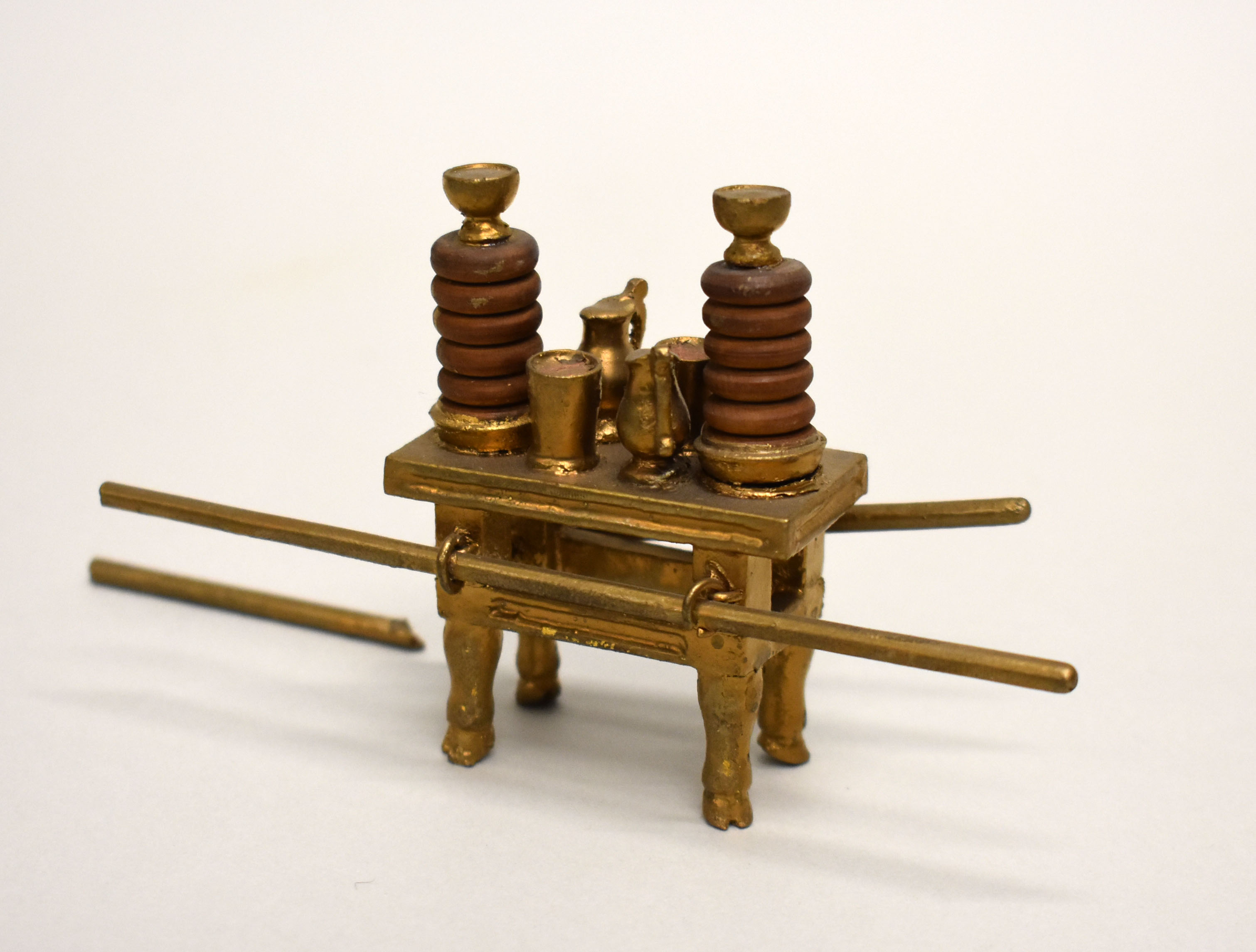 Miniatuurmodel van de Tafel der Toonbroden. De tafelpoten hebben een hoefvormig uiteinde.