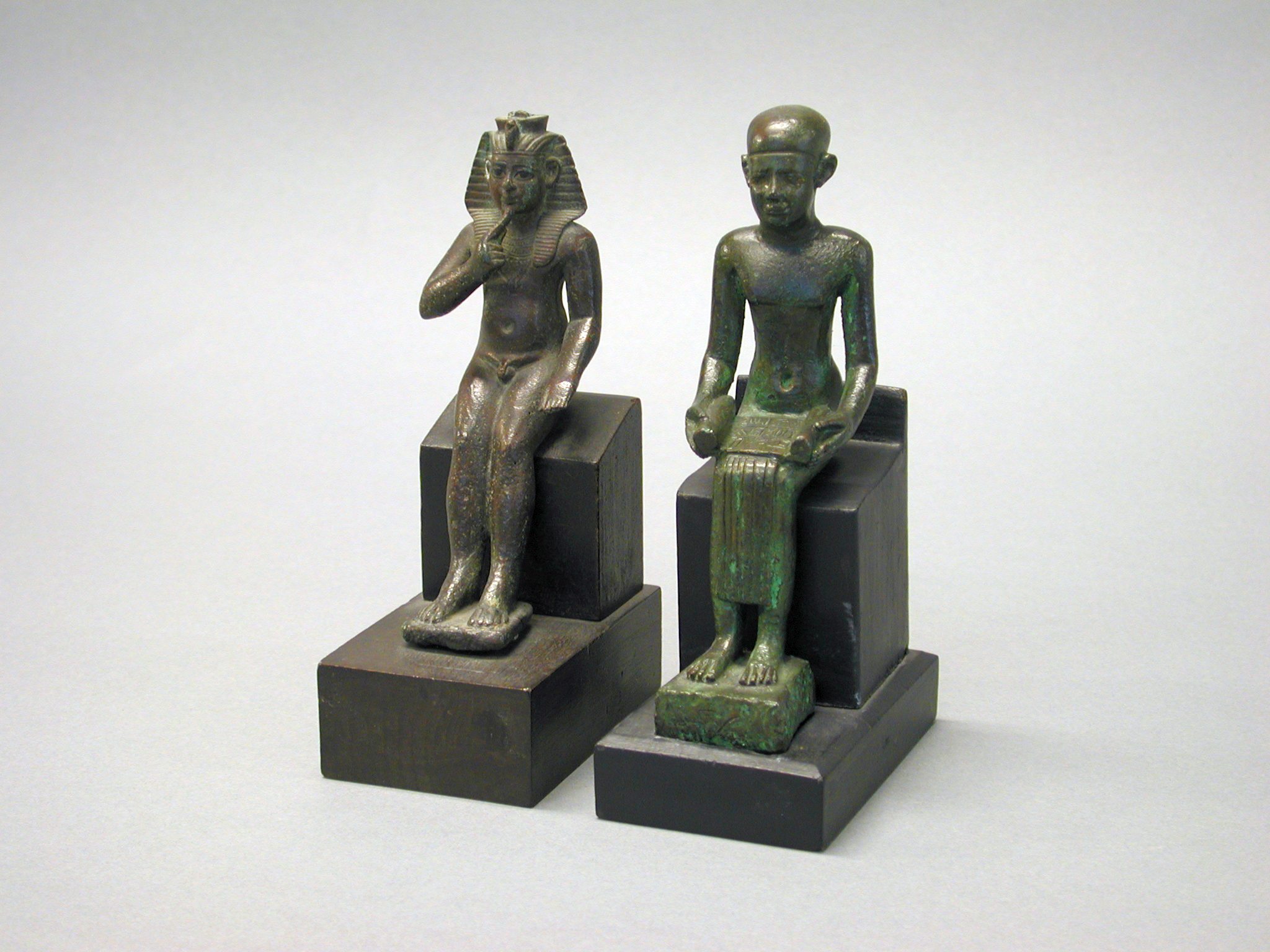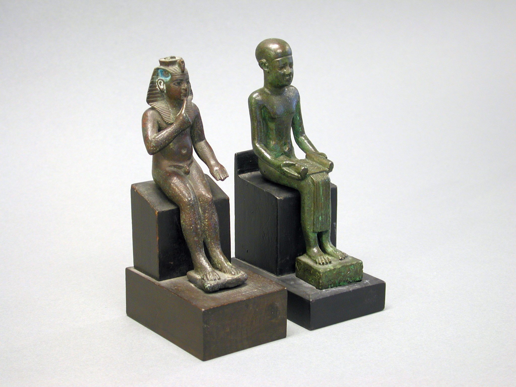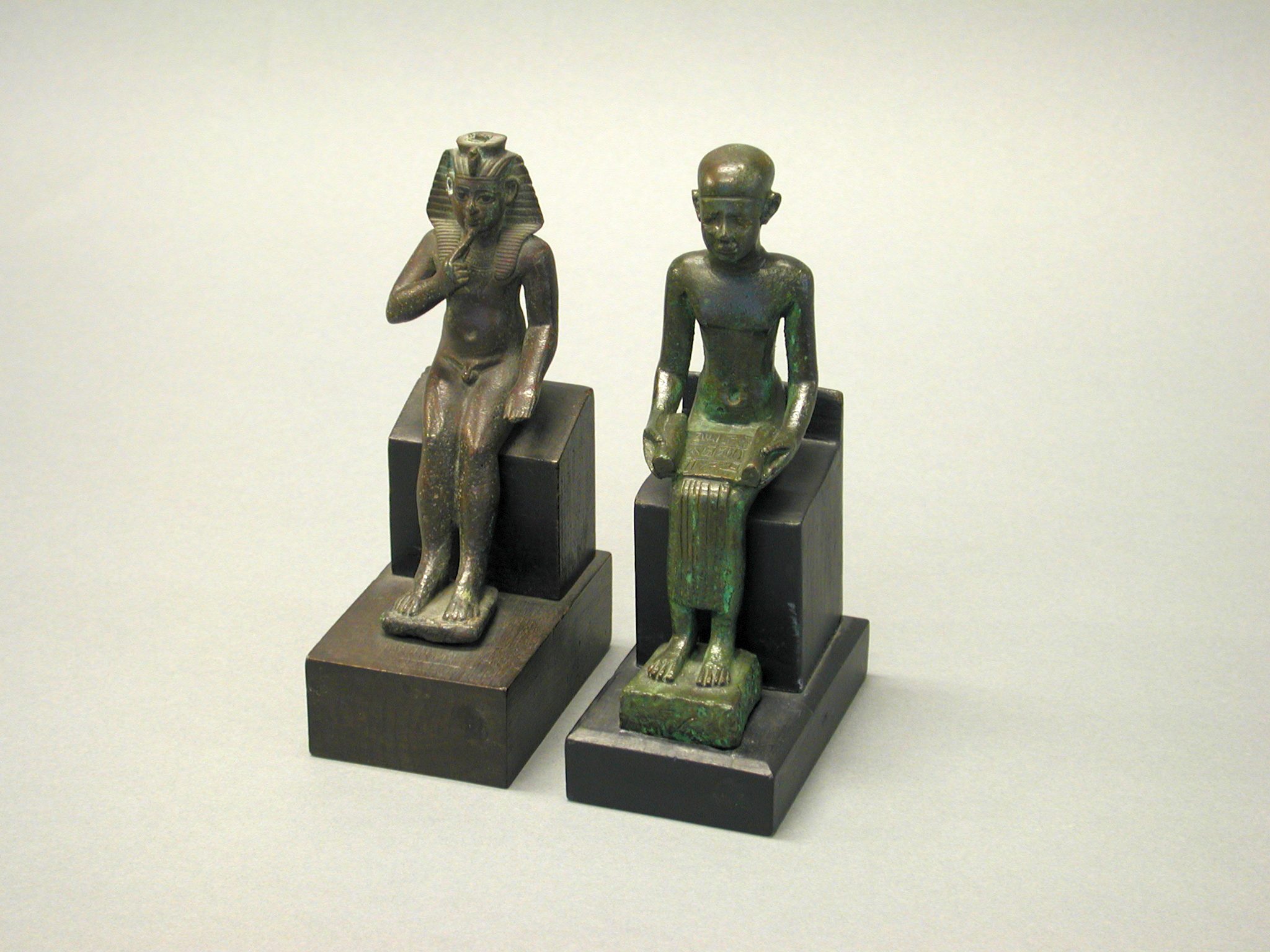 Zittende figuur met boekrol geopend op de schoot. Het bovenlijf is ontbloot evenals de voeten. De benen zijn bedekt met een geplooide rok en het hoofd met een glad hoofddeksel.