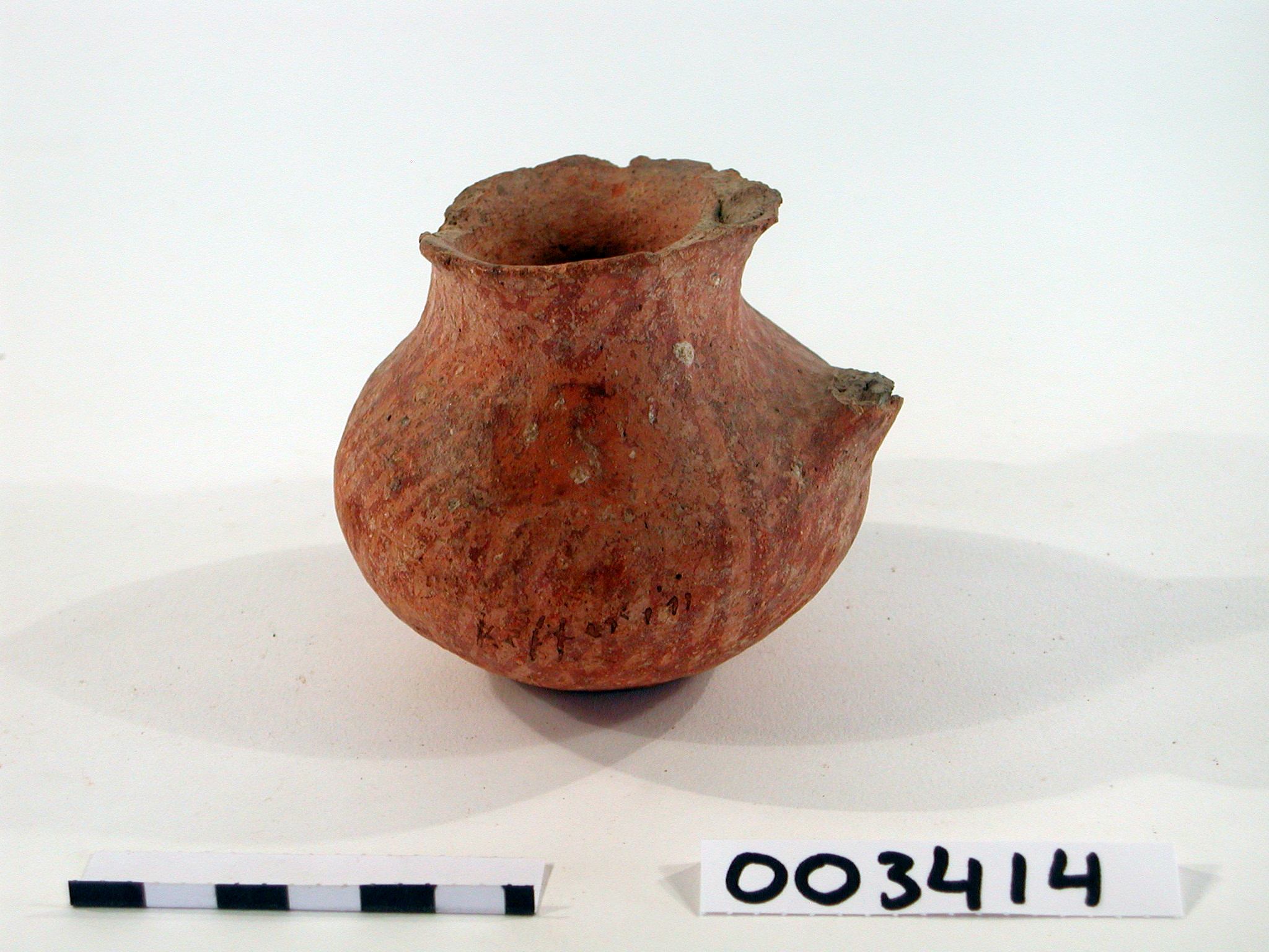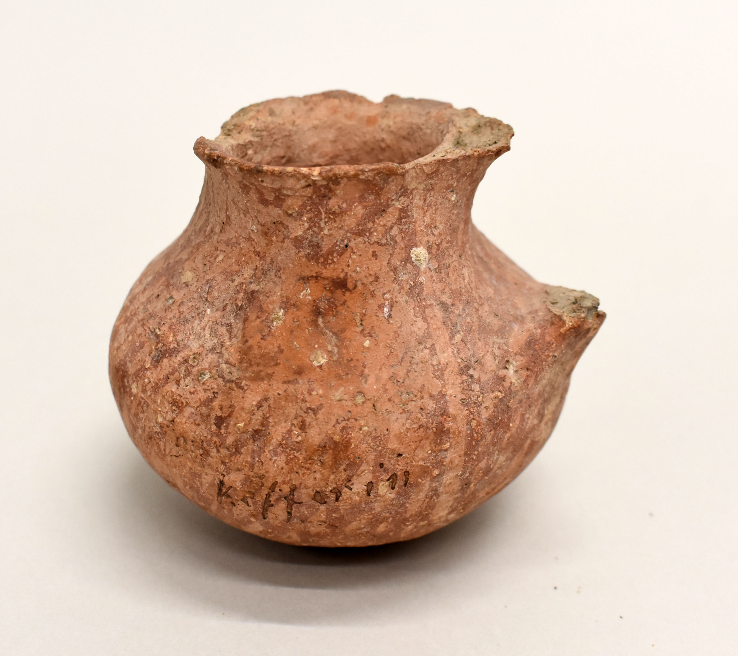 Schenkkannetje van roodkleurig aardewerk met ruitpatroon uit graf te Kefferim (Sittim)