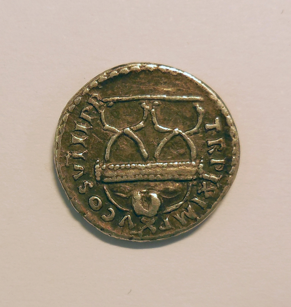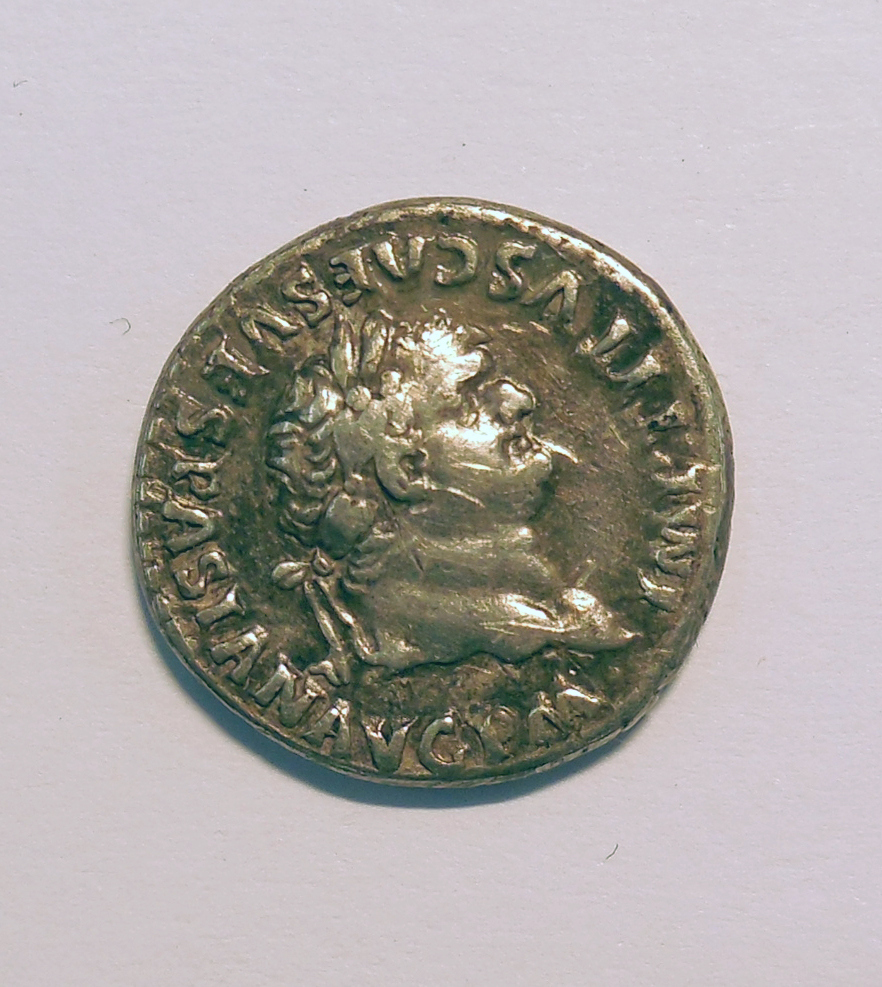 Munt met buste van Titus met "IMP(erator) TITVS CAES(ar) VESPASIAN(us) AVG(ustus) PM(pontifex maximus)", kz. met "TRP IX (tribunicia potestate voor de negende maal) IMP XV (imperator voor de 15e maal) COS VIII (consul voor de achtste maal) PP (pater patriae)"