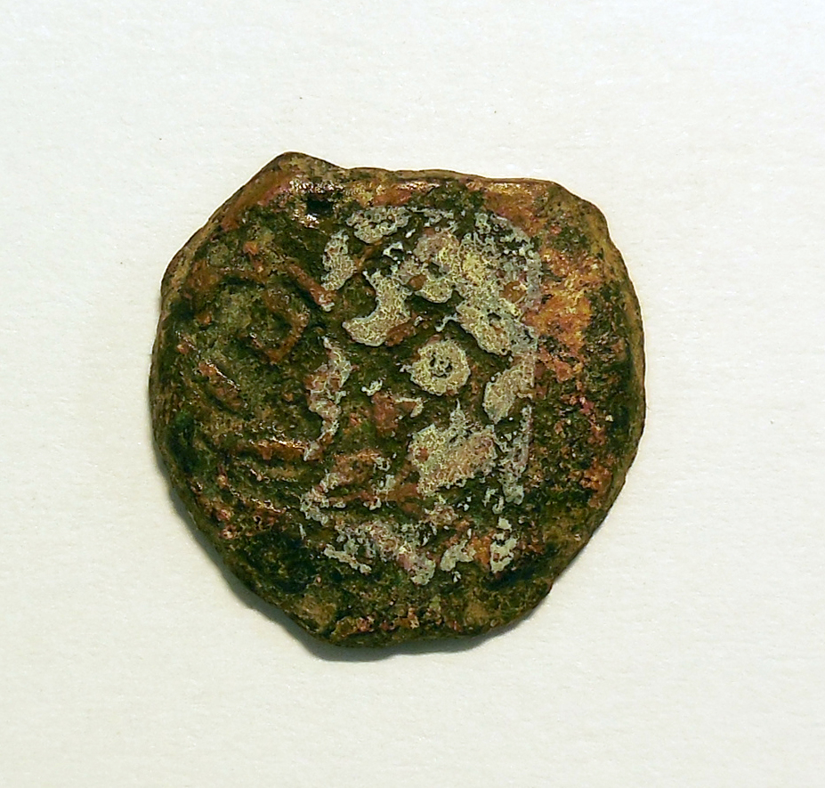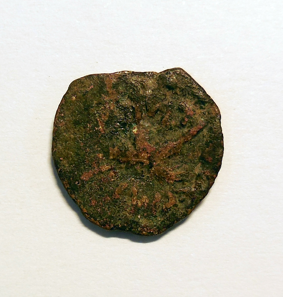 Munt Antonius Felix met twee kruislings geplaatste palmtakken, met tussen de stelen 'jaar 14' (is 54 na Chr.) en 'van Titus Claudius Caesar Germanicus', kz. krans met 'Julia Agrippina'