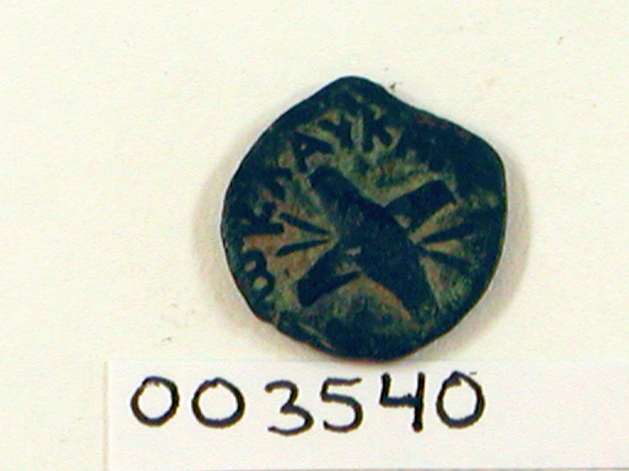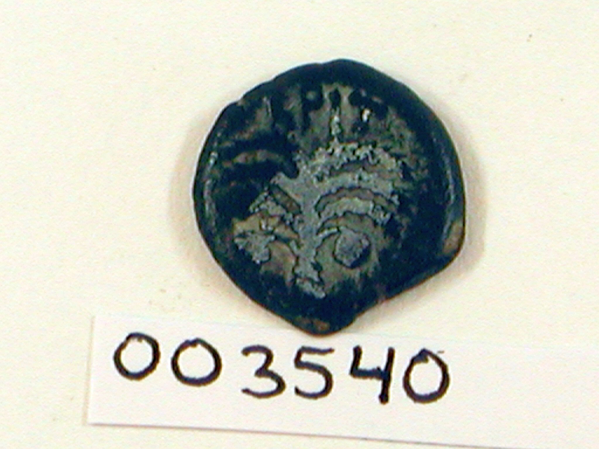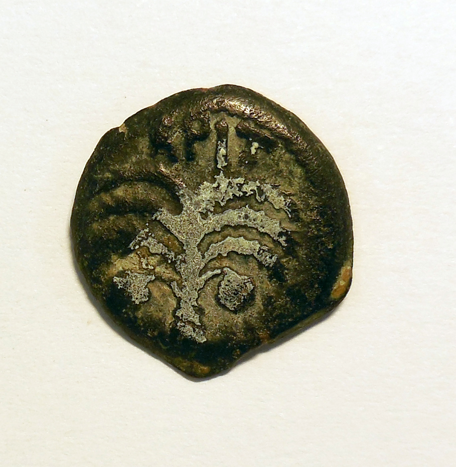 Munt Antonius Felix met twee schilden en twee speren kruislings geplaatst en tekst 'van Nero Claudius Caesar', kz. palmboom en tekst 'Brittanicus Caesar' en 'jaar 14' (is 54/55 na Chr.)