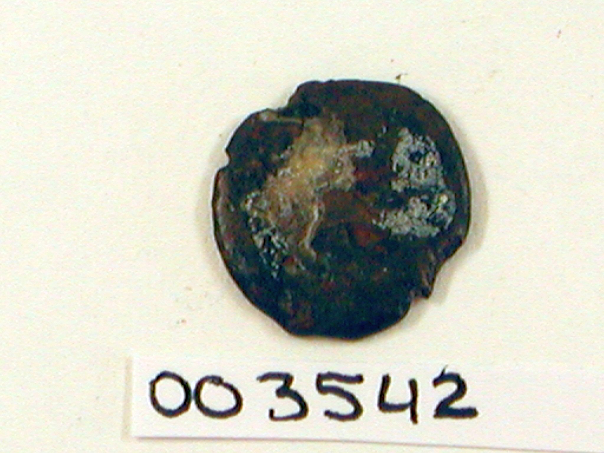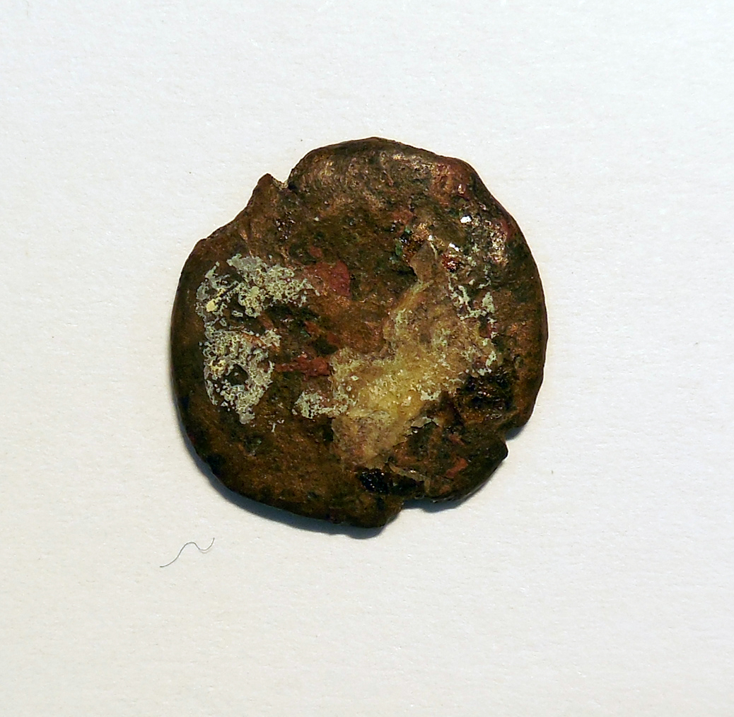 Munt Porcius Festus met palmtak en tekst 'caesar' en 'jaar 5' (is ca. 60 na Chr.?), kz. krans(?) en tekst 'Nero' (onleesbaar door lijmresten)