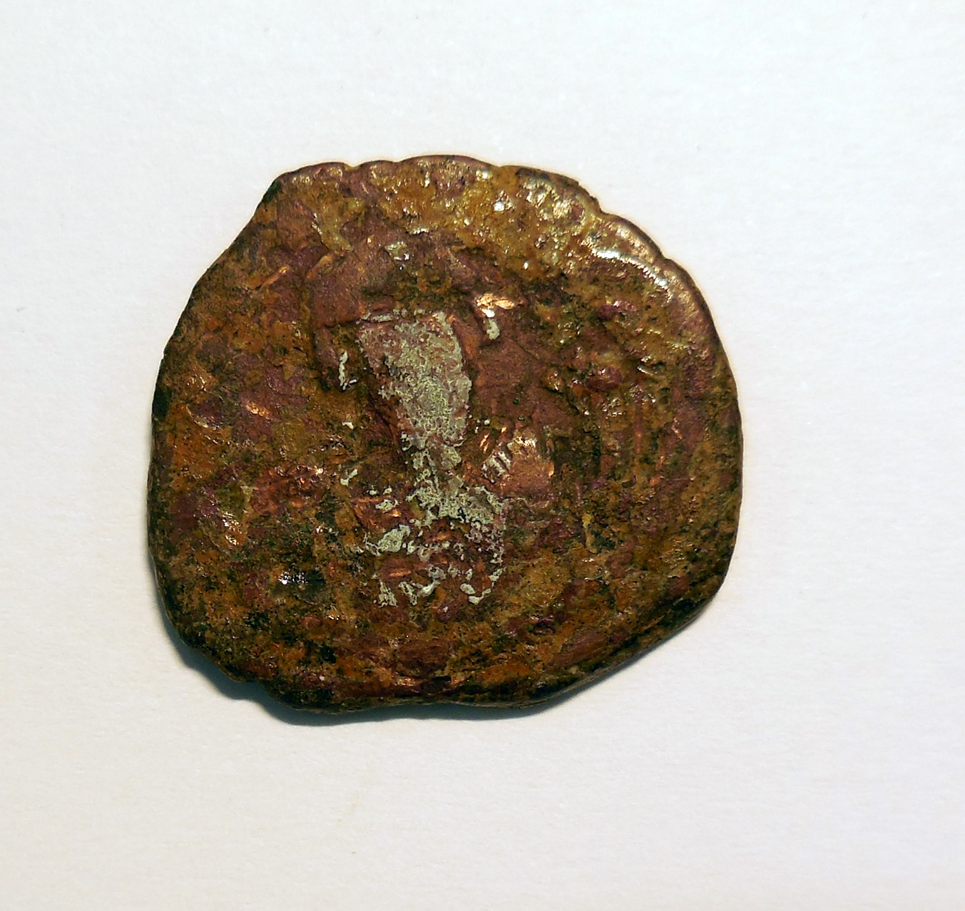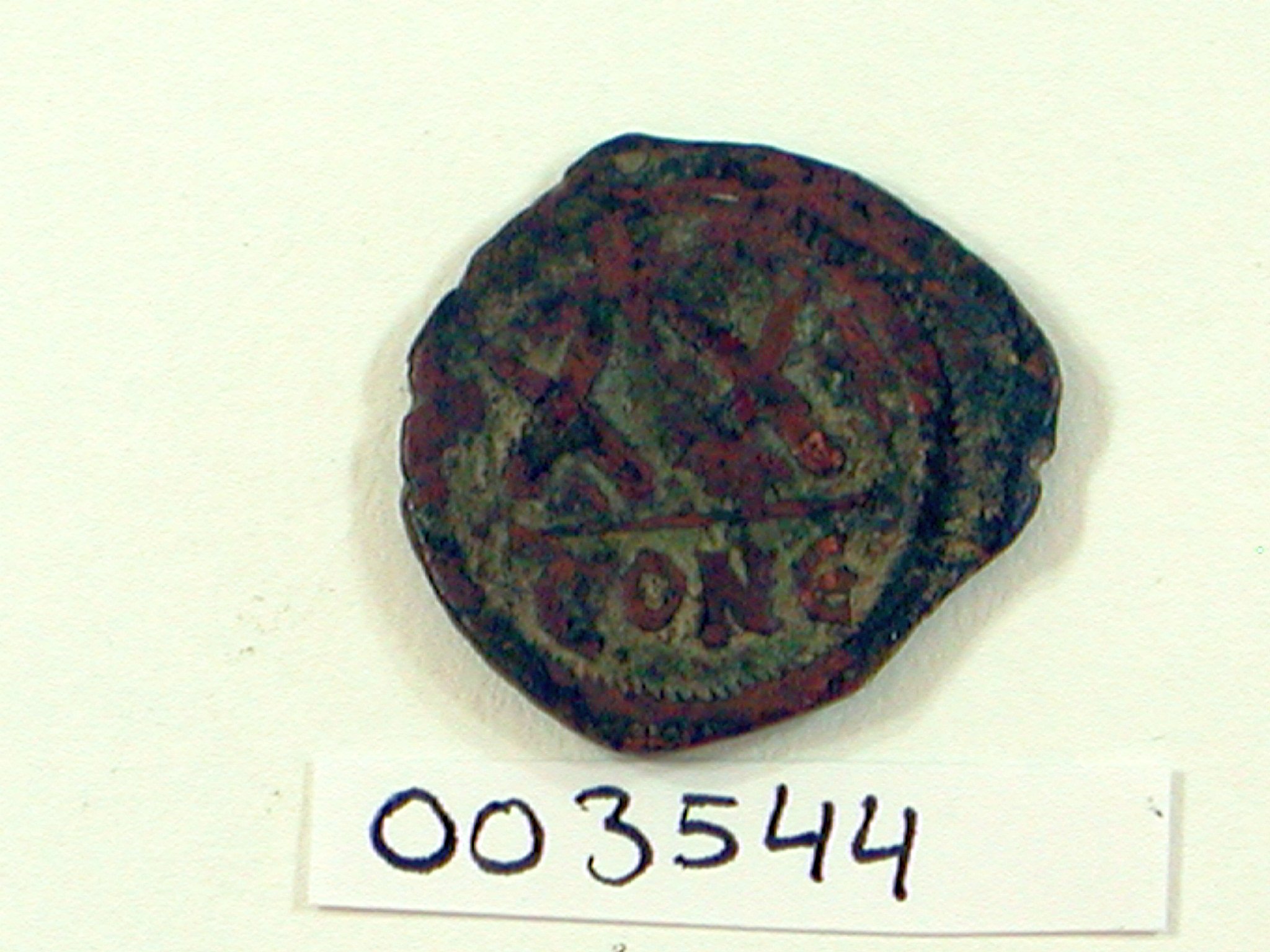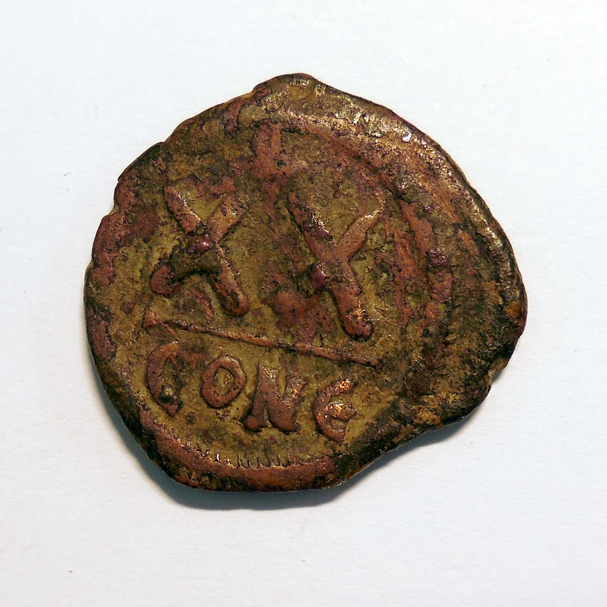 Byzantijnse munt met "XX CON E" (20 Constantinopel, vijfde atelier)