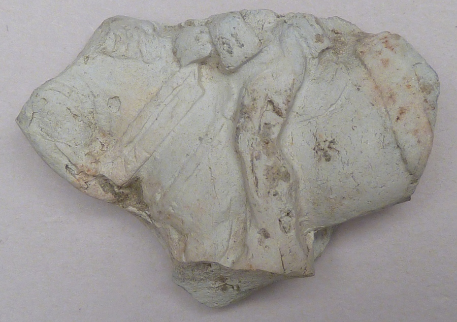 Pijpaarde fragment uit verdronken land van Zuid-Beveland: ruiter te paard