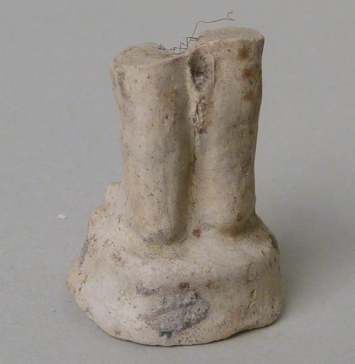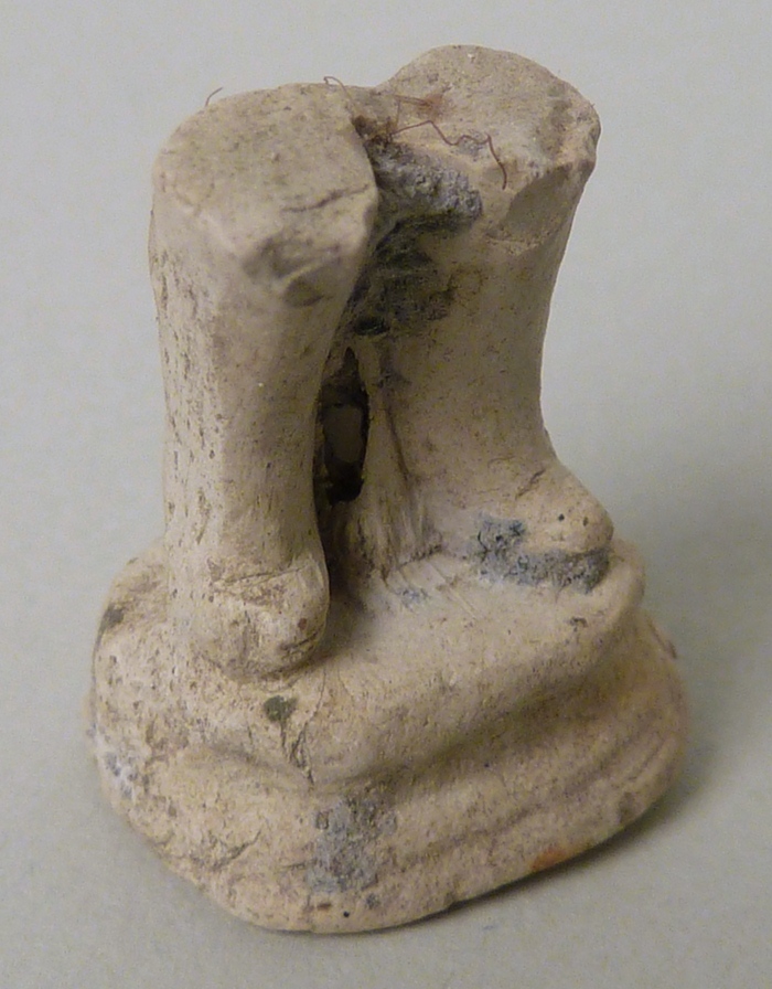 Pijpaarde fragment uit verdronken land van Zuid-Beveland: staand Christuskind op geprofileerde sokkel