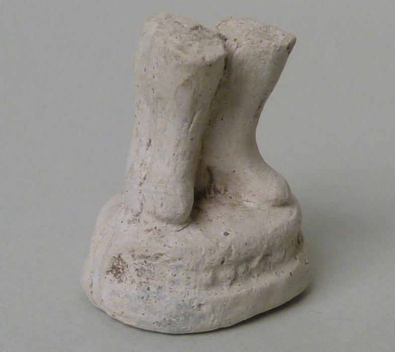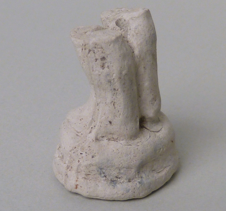 Pijpaarde fragment uit verdronken land van Zuid-Beveland: staand Christuskind op geprofileerde sokkel