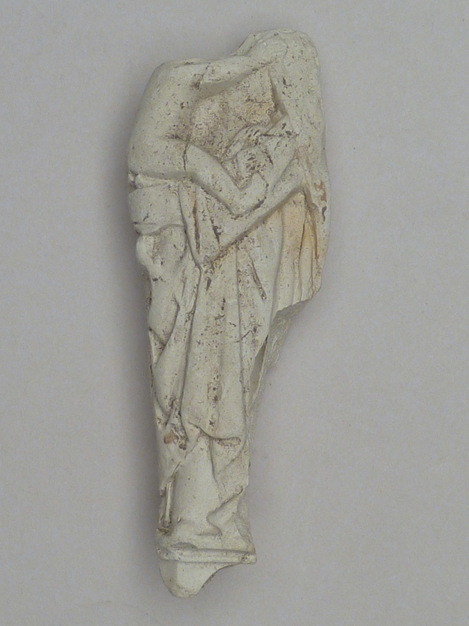 Pijpaarde fragment uit verdronken land van Zuid-Beveland: Maria met kind op rechterarm