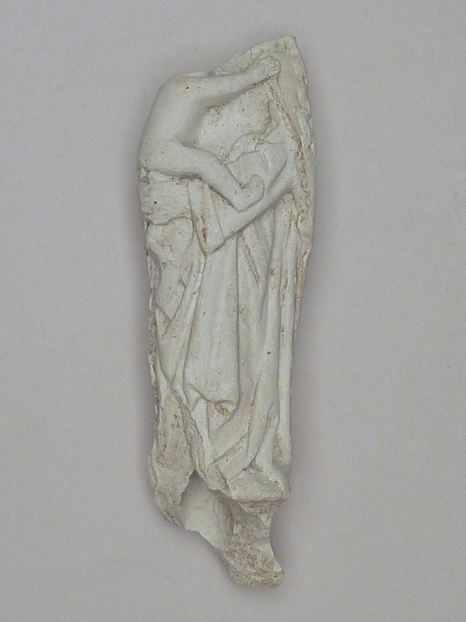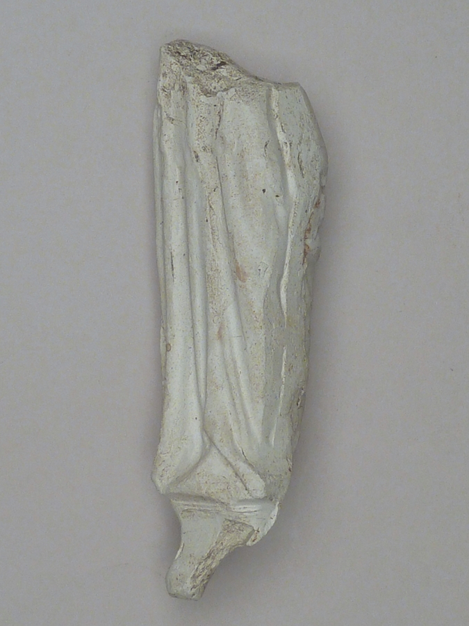 Pijpaarde fragment uit verdronken land van Zuid-Beveland: Maria met kind op rechterarm