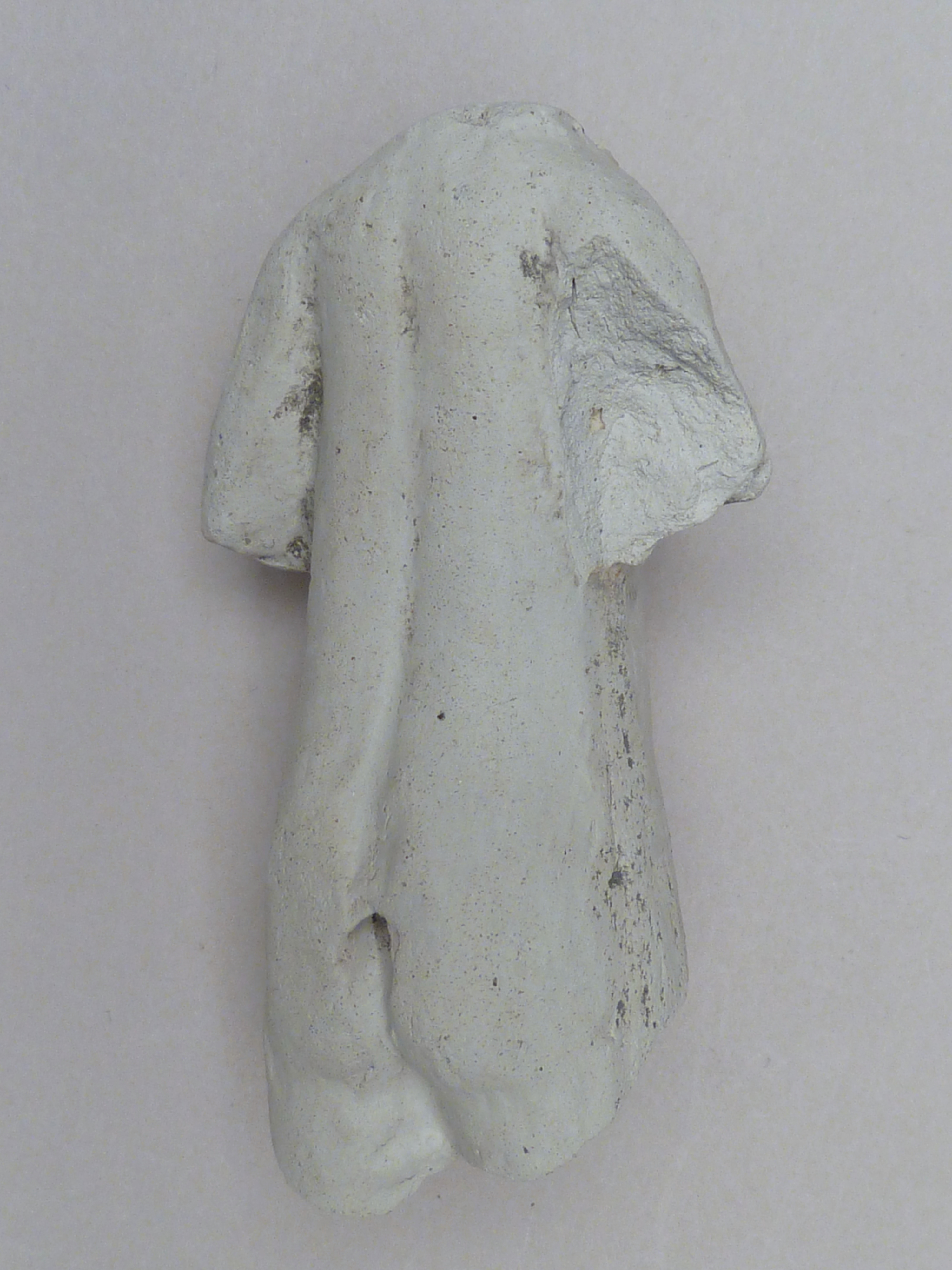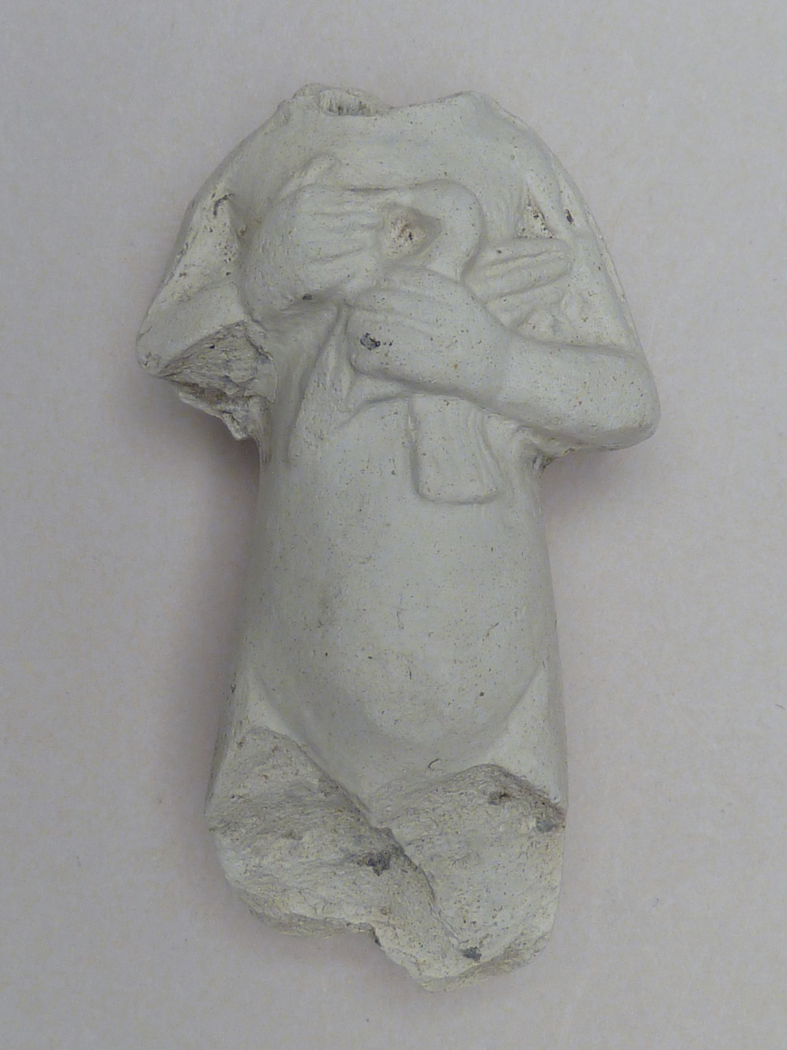 Pijpaarde fragment uit verdronken land van Zuid-Beveland: staand Christuskind met duif