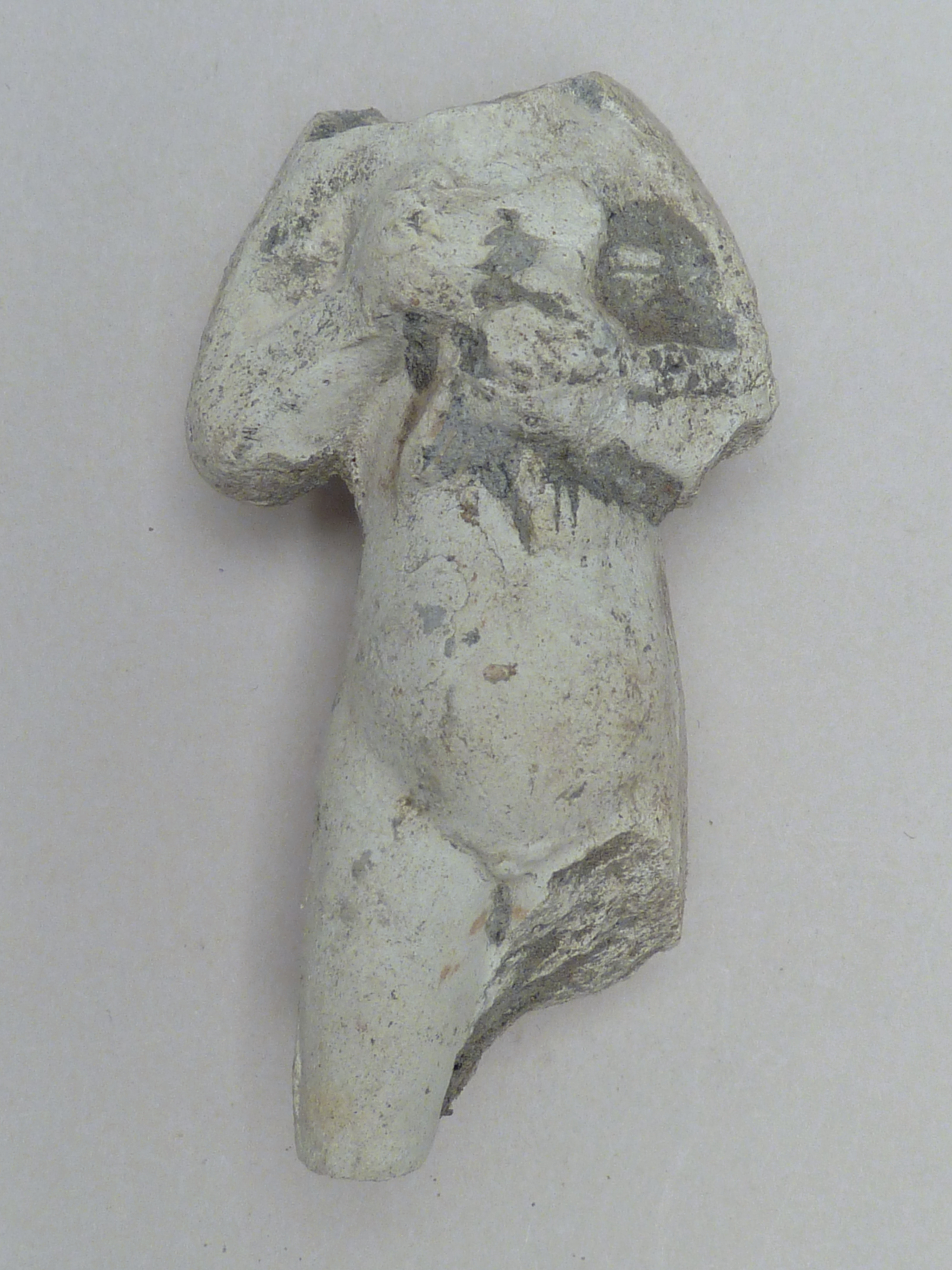 Pijpaarde fragment uit verdronken land van Zuid-Beveland: staand Christuskind met duif