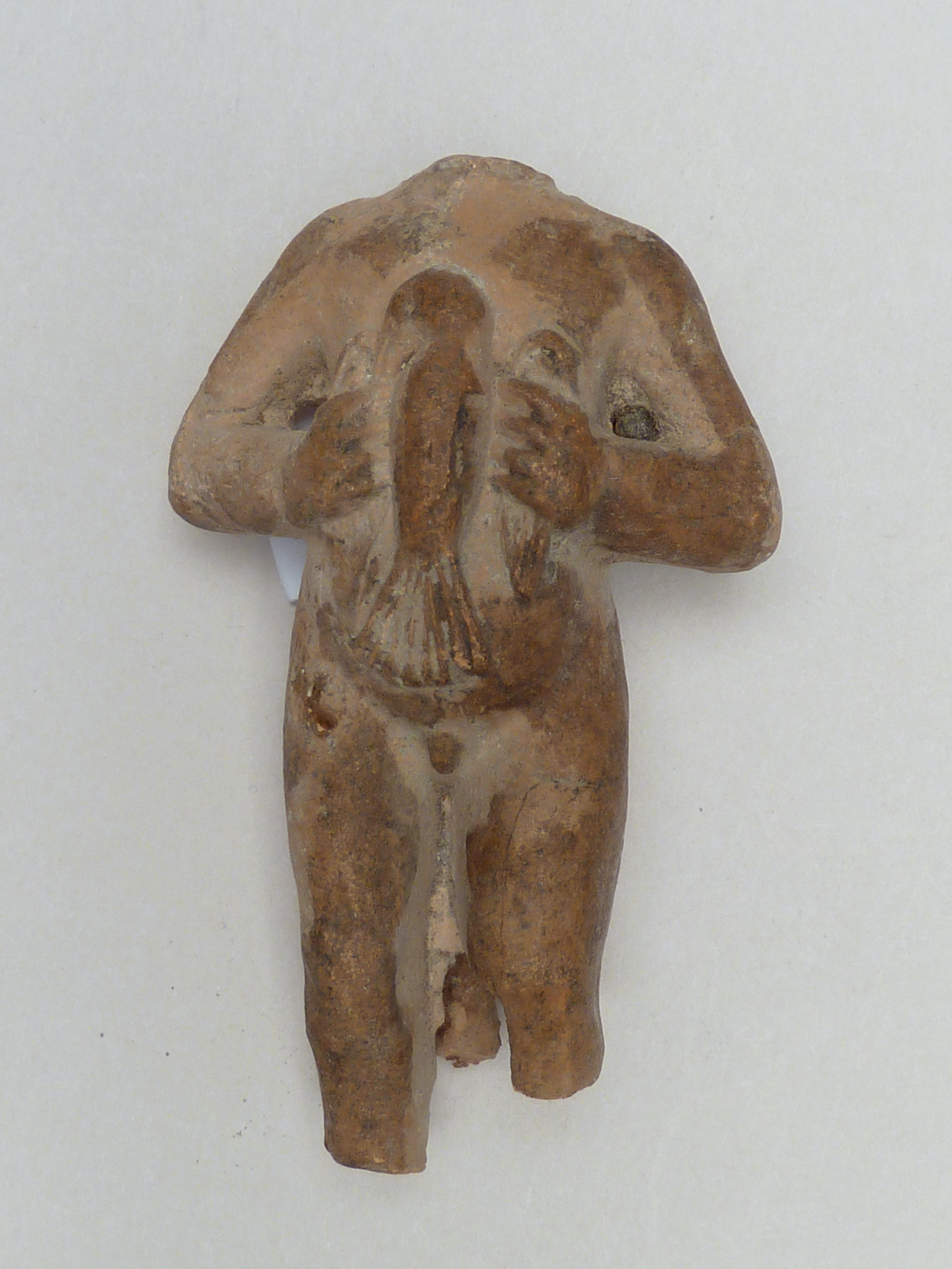 Terracotta fragment uit verdronken land van Zuid-Beveland: staand Christuskind met duif