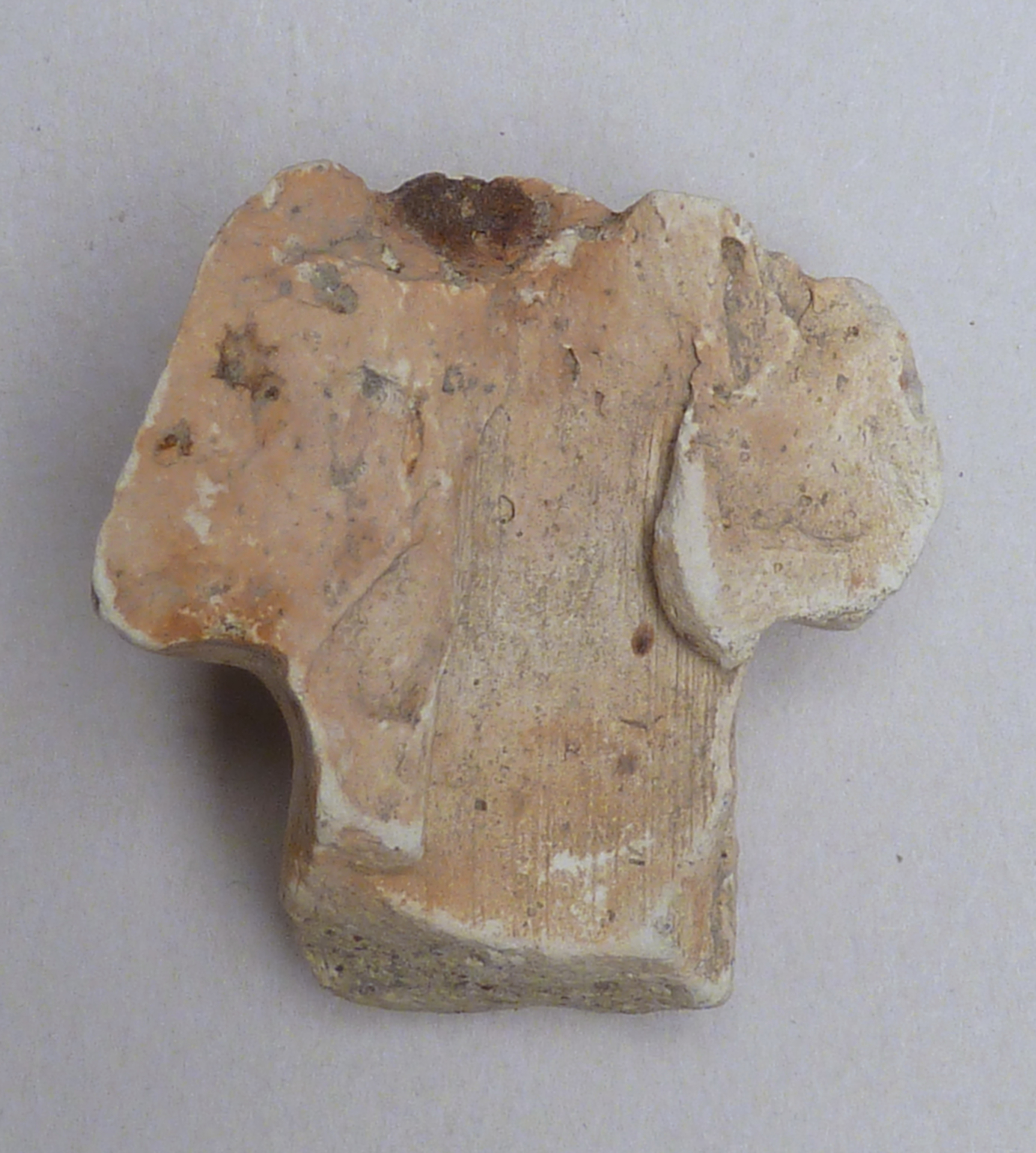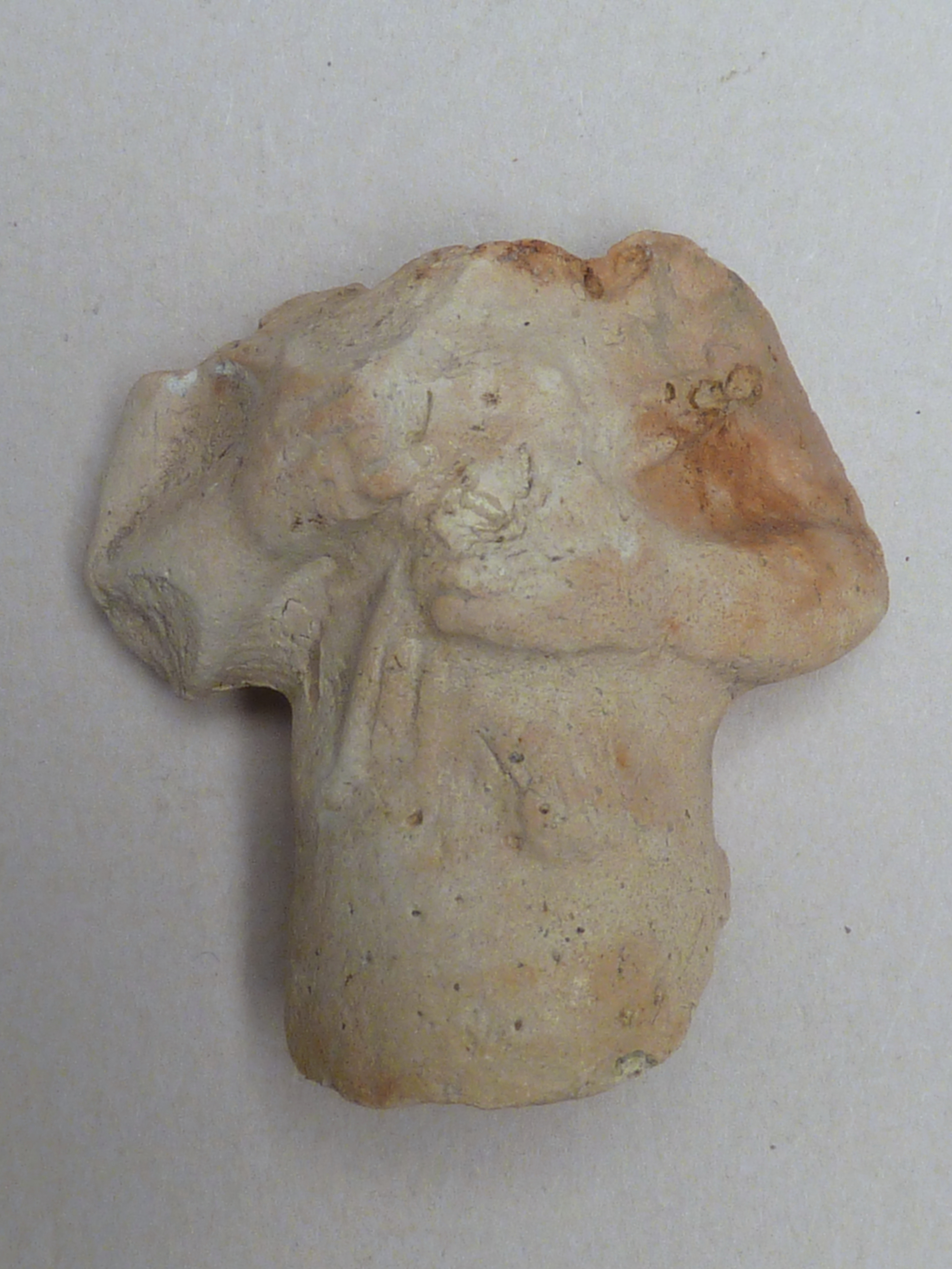 Pijpaarde fragment uit verdronken land van Zuid-Beveland: staand Christuskind met duif