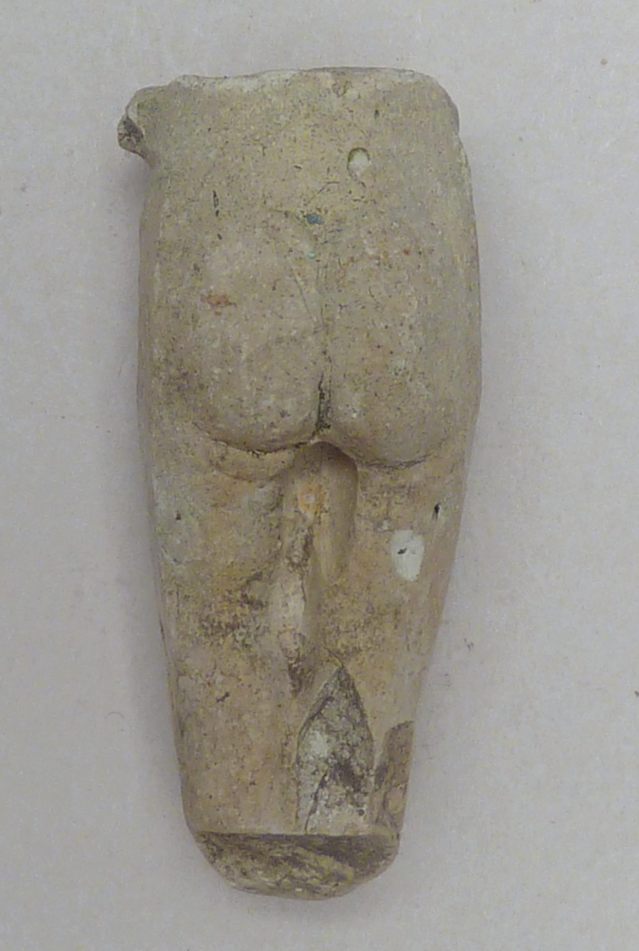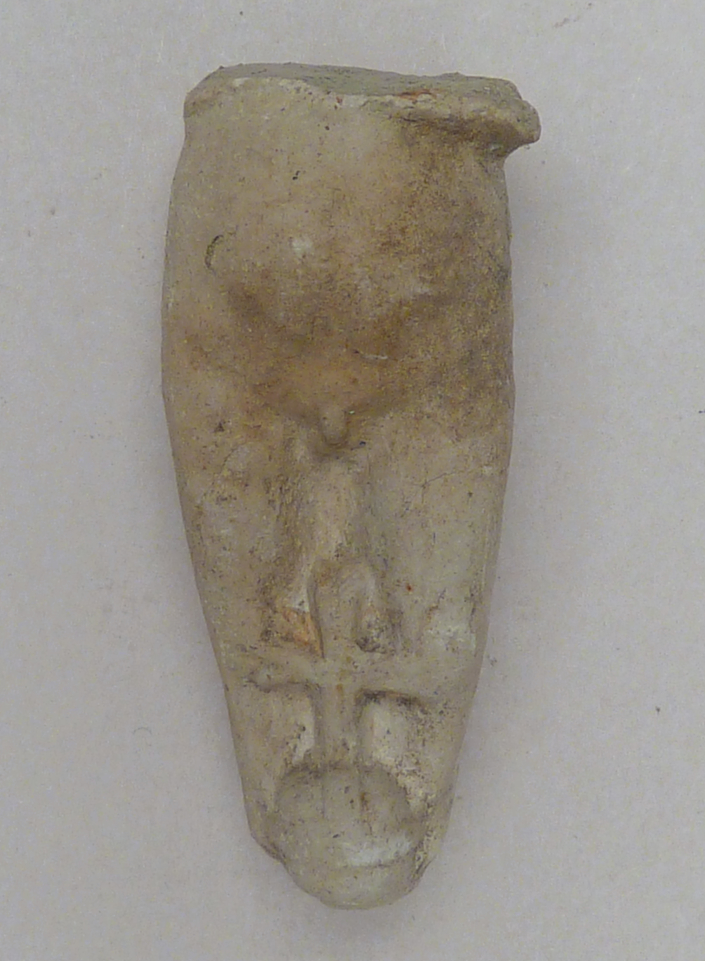Pijpaarde fragment uit verdronken land van Zuid-Beveland: Christuskind staand op rijksappel