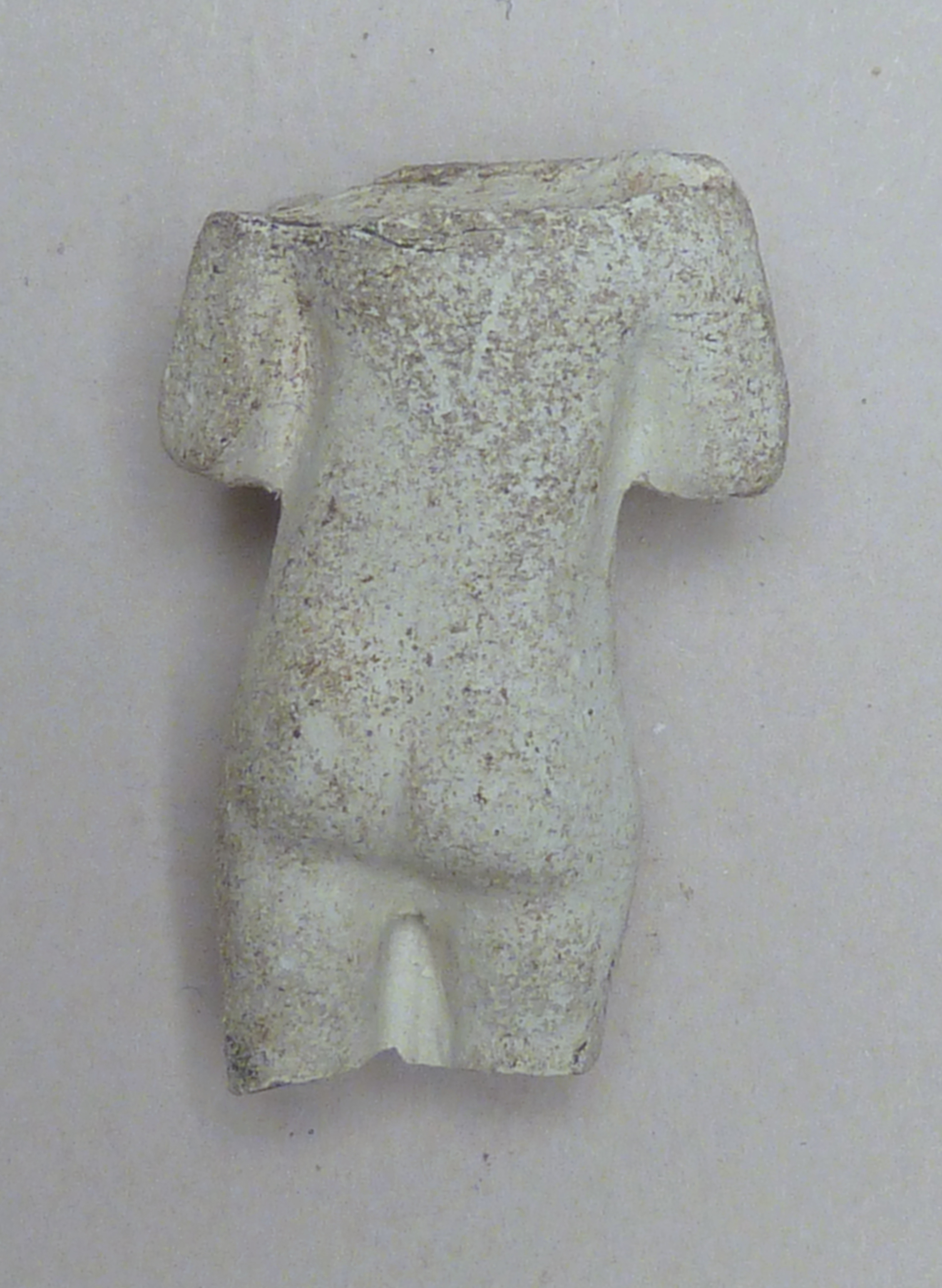 Pijpaarde fragment uit verdronken land van Zuid-Beveland: staand Christuskind met rijksappel