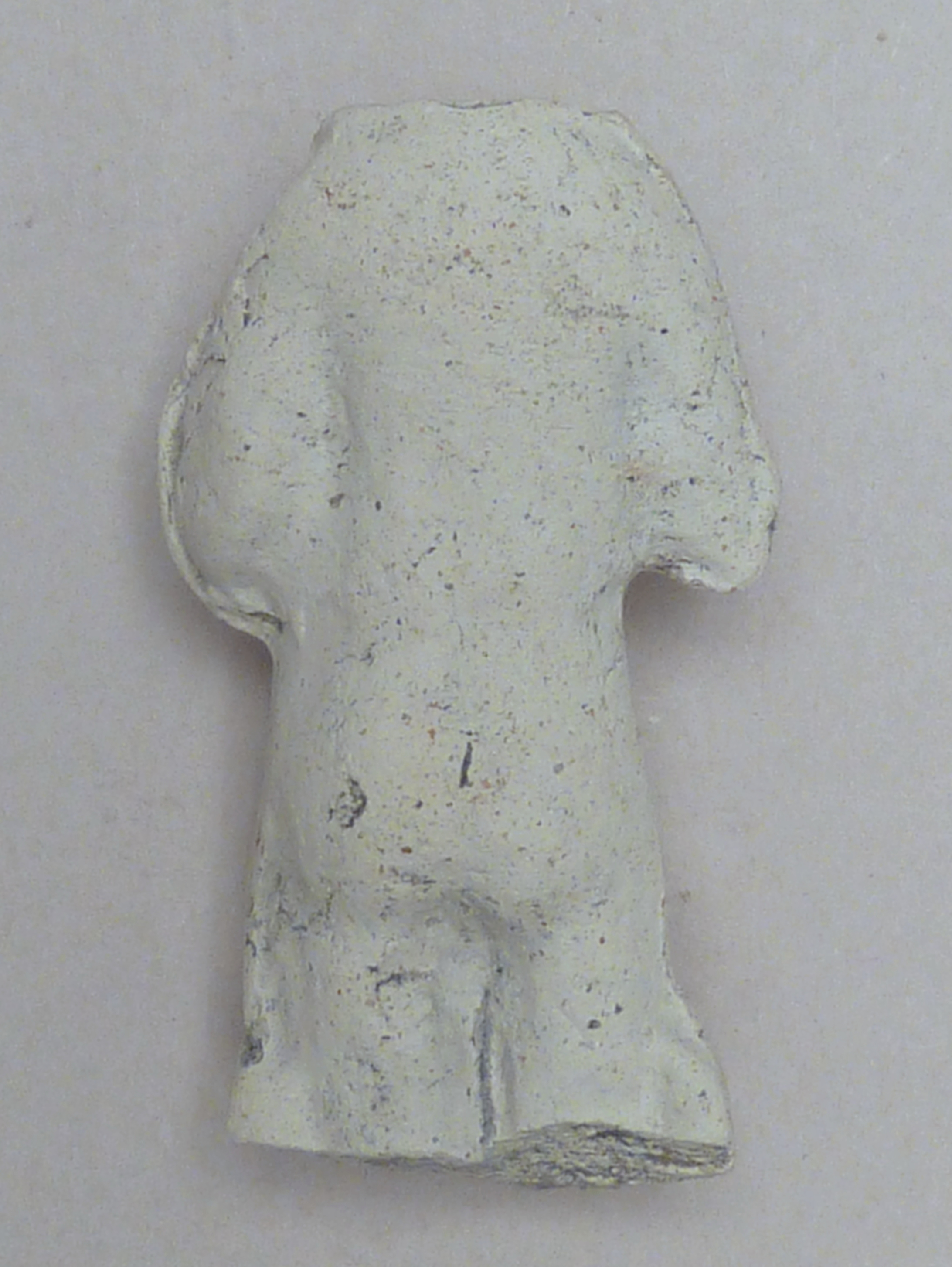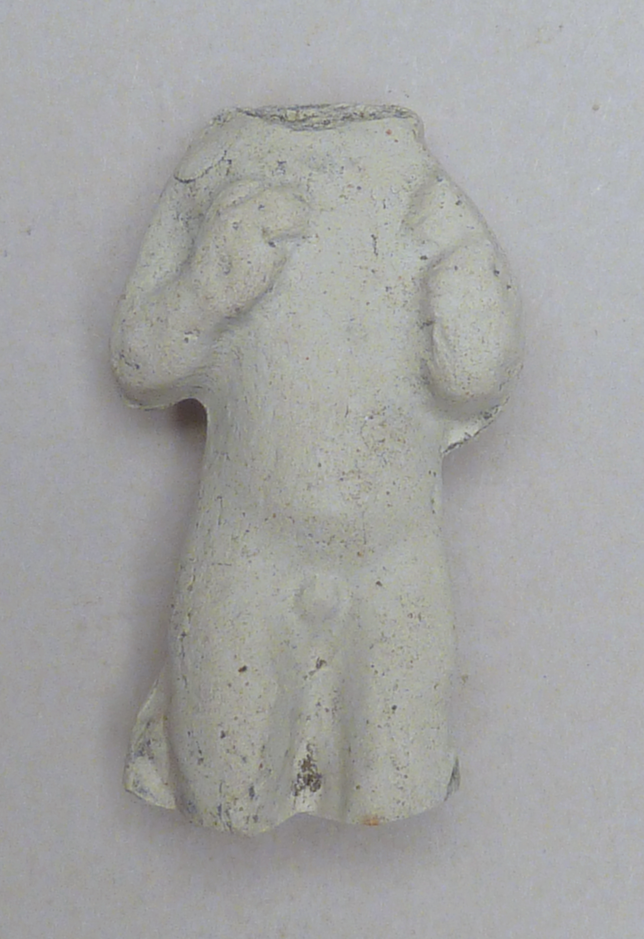 Pijpaarde fragment uit verdronken land van Zuid-Beveland: staand Christuskind met rijksappel