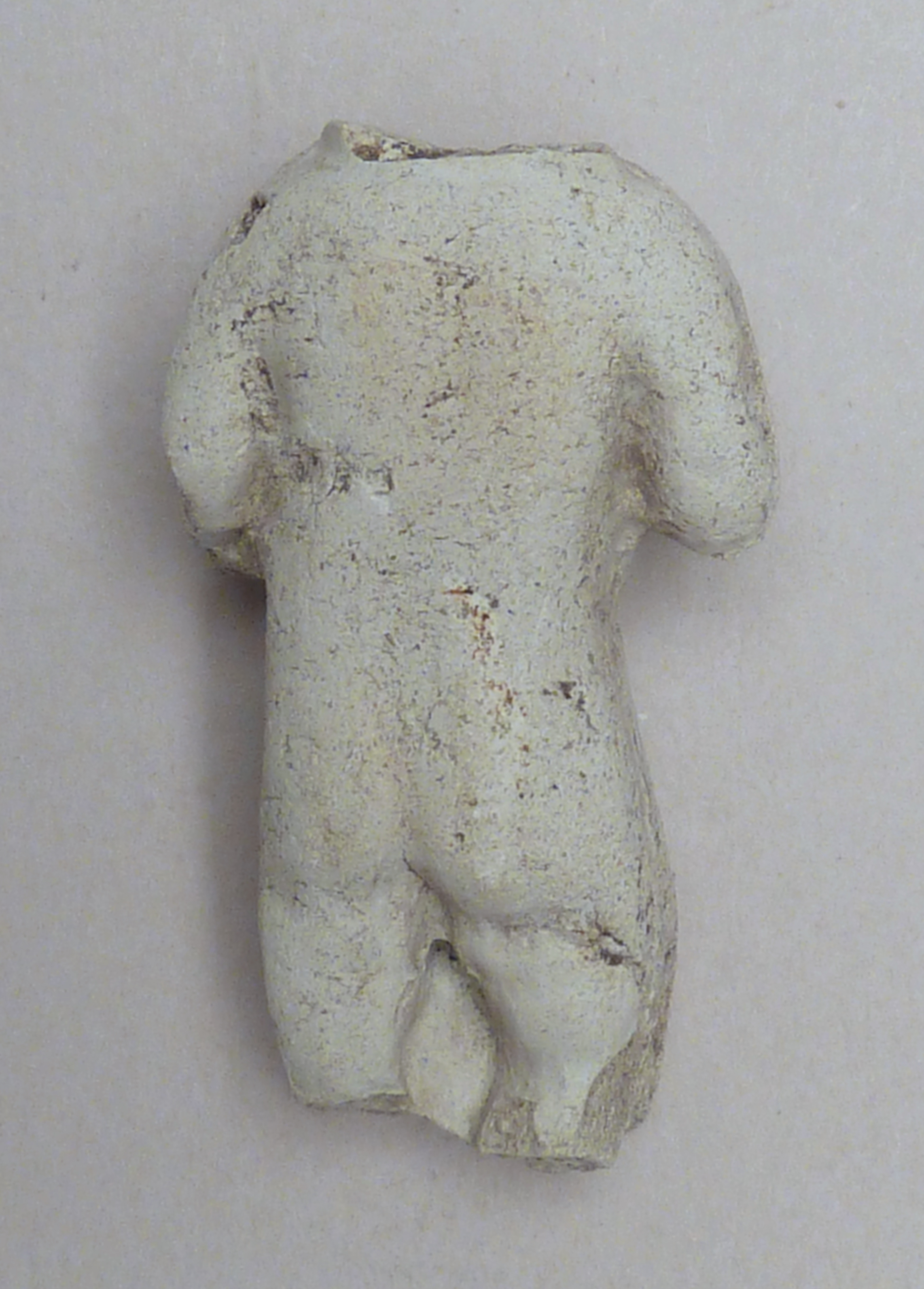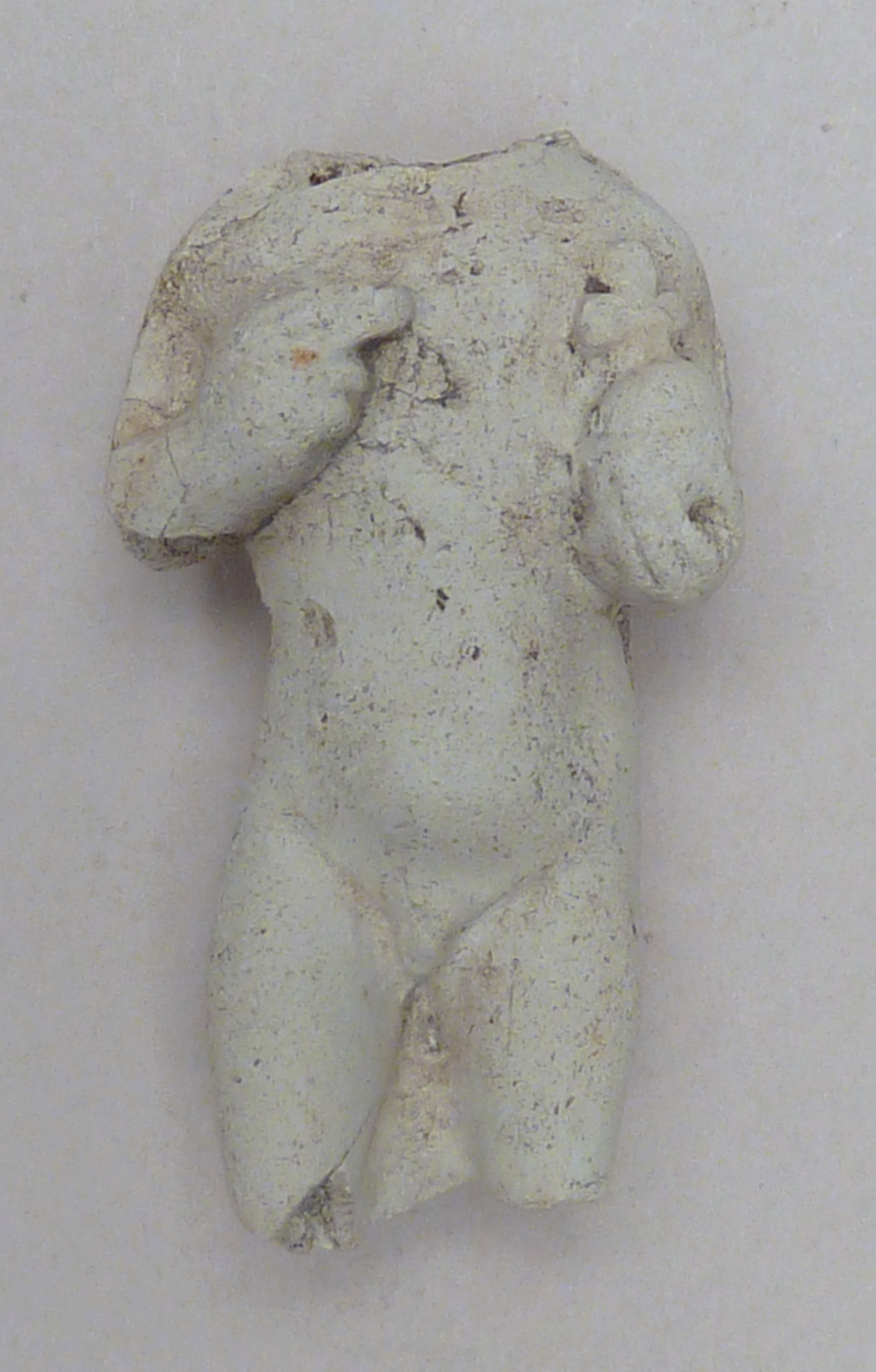 Pijpaarde fragment uit verdronken land van Zuid-Beveland: staand Christuskind met rijksappel