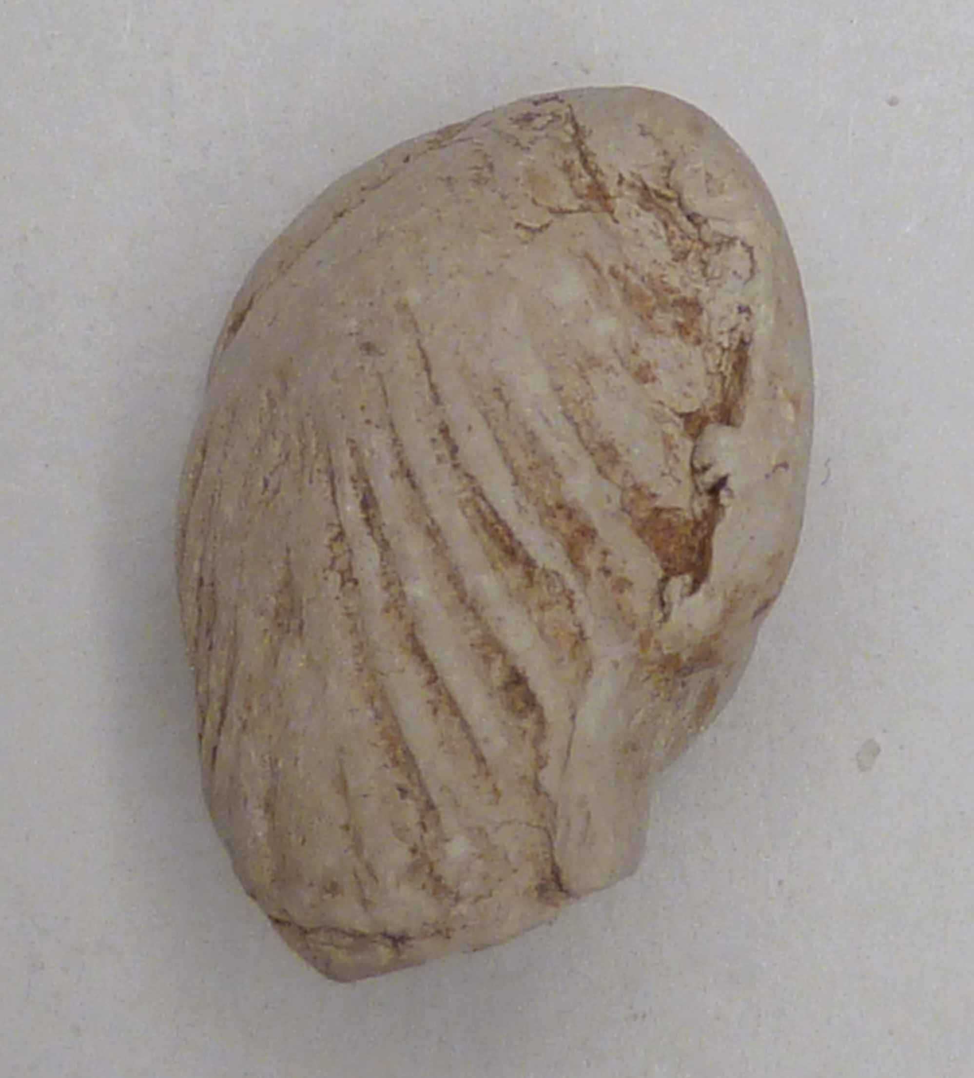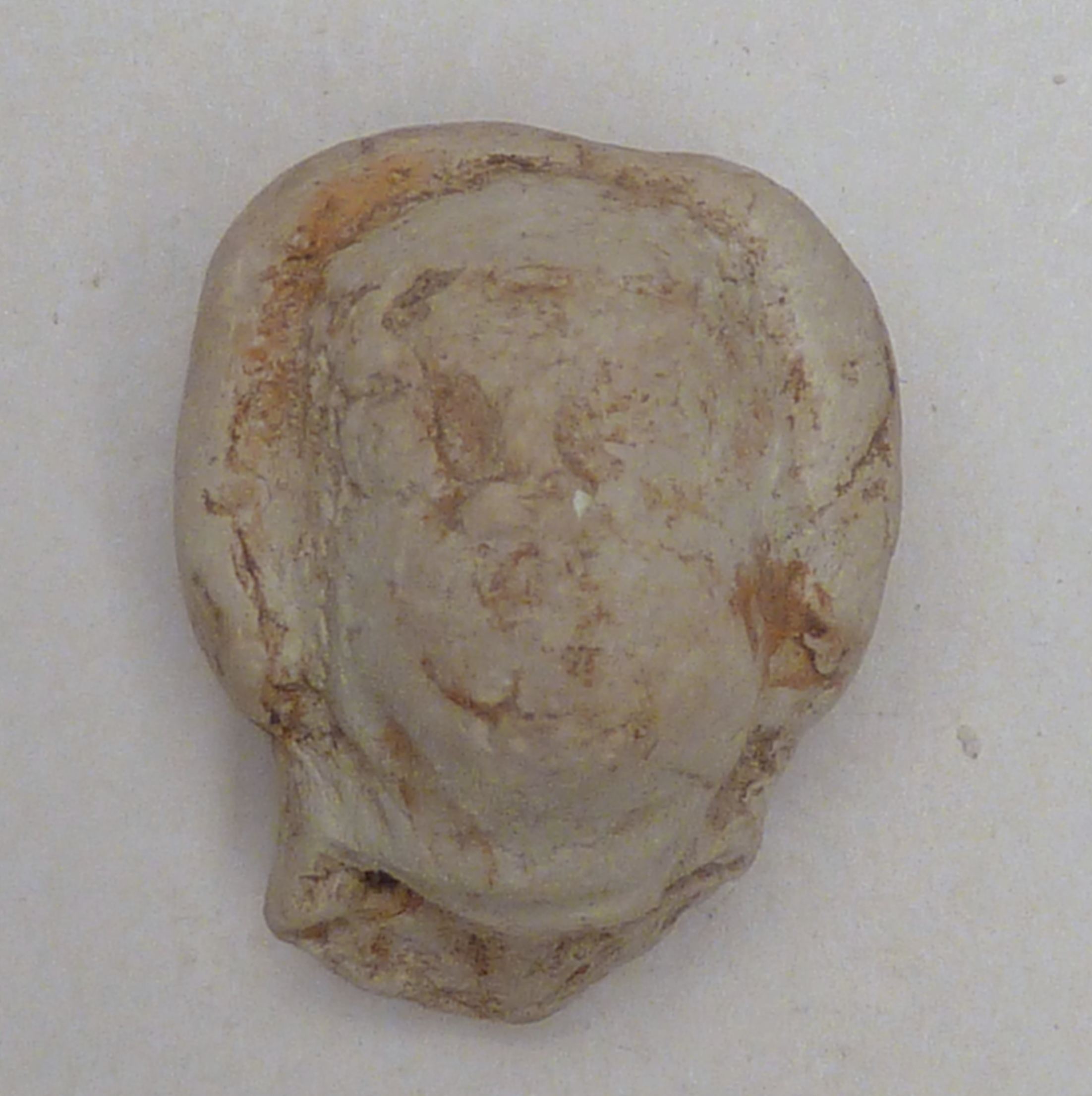 Pijpaarde fragment uit verdronken land van Zuid-Beveland: hoofd van vrouwelijke heilige(?)