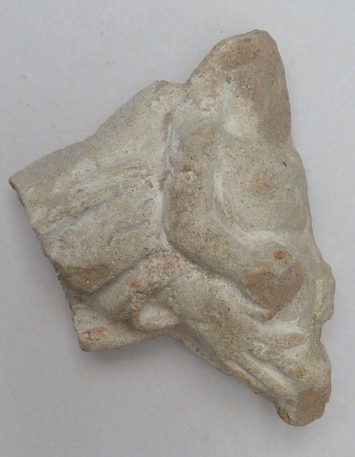 Pijpaarde fragment uit verdronken land van Zuid-Beveland: Maria met kind op de arm
